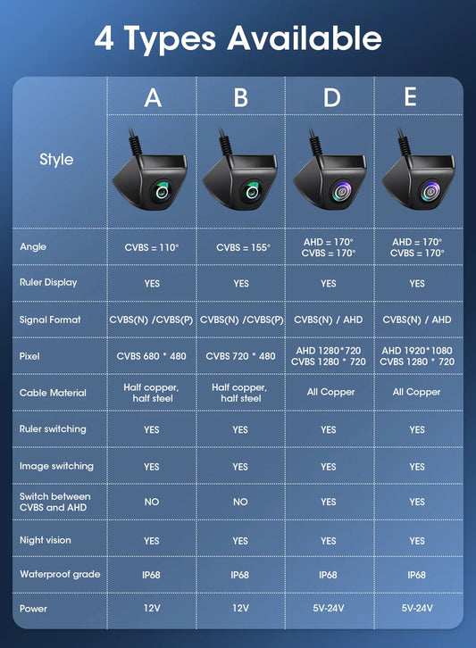 Regular price From $71.78 USDRegular priceUnit price / per$0.00 USDSale price From $71.78 USDAHD 1080P CVBS Night Vision IP68 Waterproof 170 Degree Fish Eye Lens Backup Rear View Camera For Vehicle Monitor Android