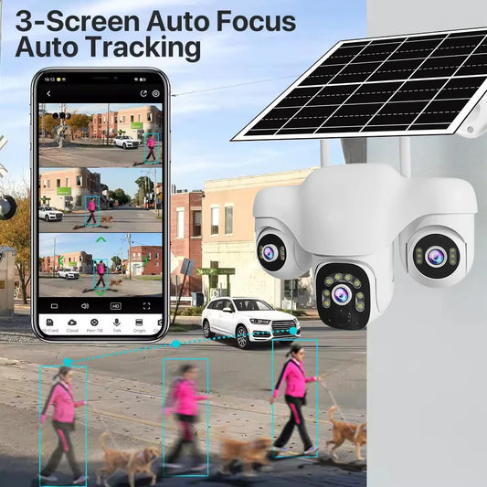 Regular price From $56.06 USDRegular priceUnit price / per$0.00 USDSale price From $56.06 USDHome Security 4G IP Solar Camera Triple Screen 360°PTZ 10x Zoom CCTV 15MP Wireless Surveillance Security Protection IP Camera