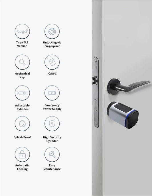 Regular price $256.62 USDRegular priceUnit price / per$0.00 USDSale price $256.62 USDWINFREE SMART Interior Wooden Door Lock, Tuya Bluetooth Smart Key Lock, Smart Card Passcode Fingerprint Keyless Lock
