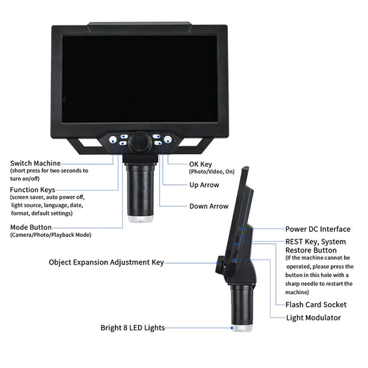 Regular price From $102.30 USDRegular priceUnit price / per$0.00 USDSale price From $102.30 USDDDCAMERA 7" LCD Digital Microscope 1080P Coin Microscope Magnifier 12MP Ultra-Precise Focusing Soldering Microscopes Support PC