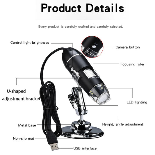 Regular price $432.38 USDRegular priceUnit price / per$0.00 USDSale price $432.38 USD1600X 1000X USB Microscope Handheld Portable Digital Microscope USB Interface Electron Microscopes with 8 LEDs with Bracket