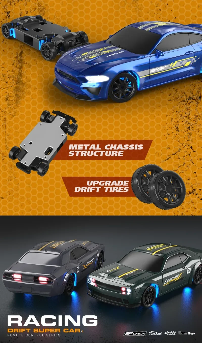 Stable Control System: 2.4Ghz control frequency, support multiple rc car drifting racing at the same time, equipped with a new differential and rear four-wheel drive system, turning and driving more stable.