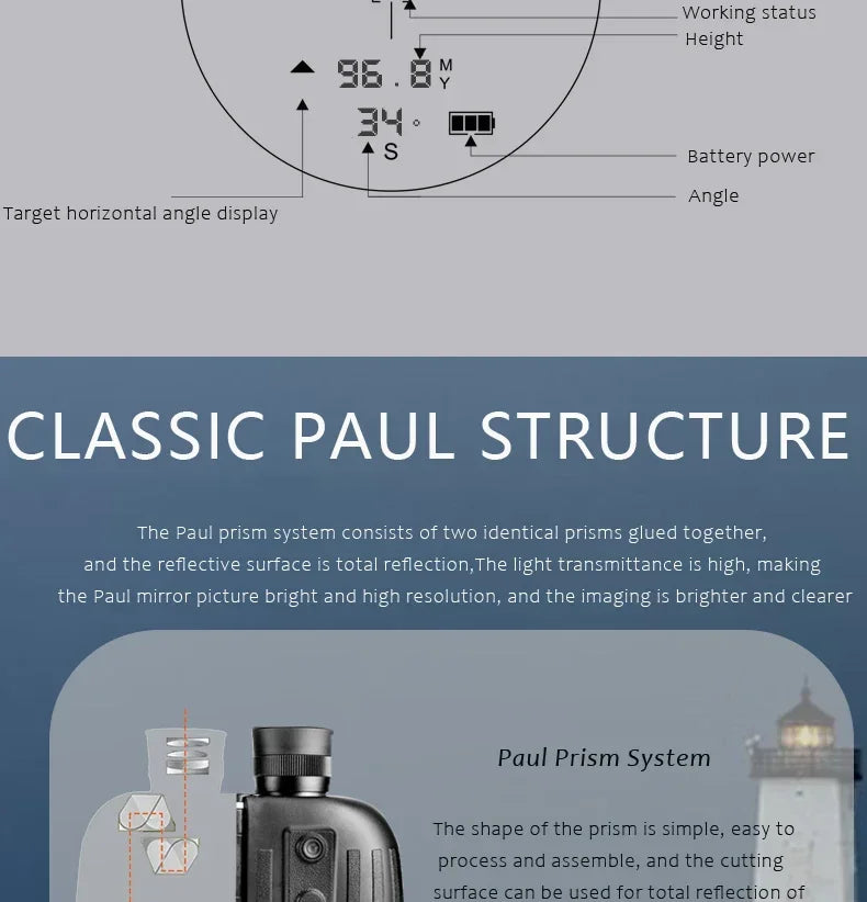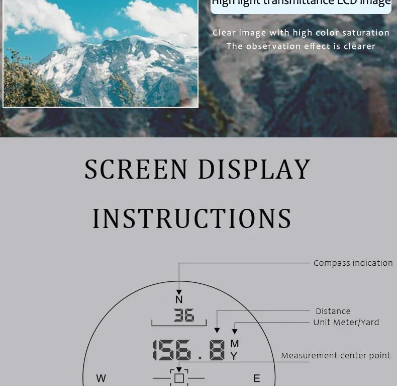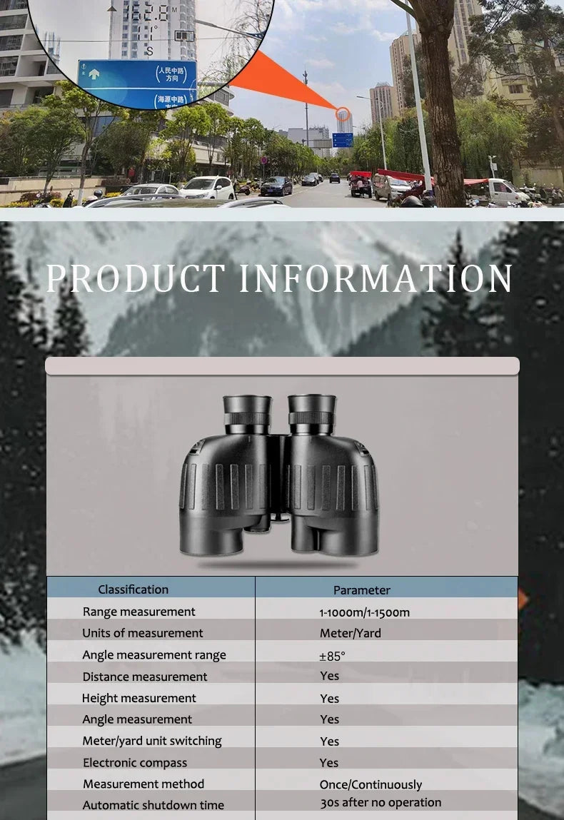 Advanced Functionality: These binoculars offer an array of functions including distance measurement, height measurement, angle measurement, electronic compass, and easy switching between meters and yards. These features allow for precise navigation and observation, making them a versatile tool for various outdoor activities.