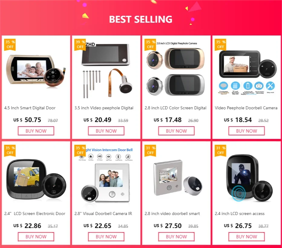 Topvico Video Peephole Doorbell Camera Video-eye Auto Record Electronic Ring Night View Digital Door Viewer Entry Home Security