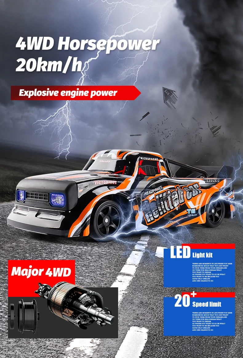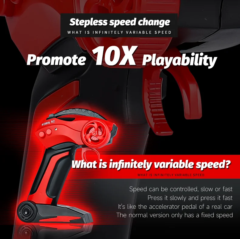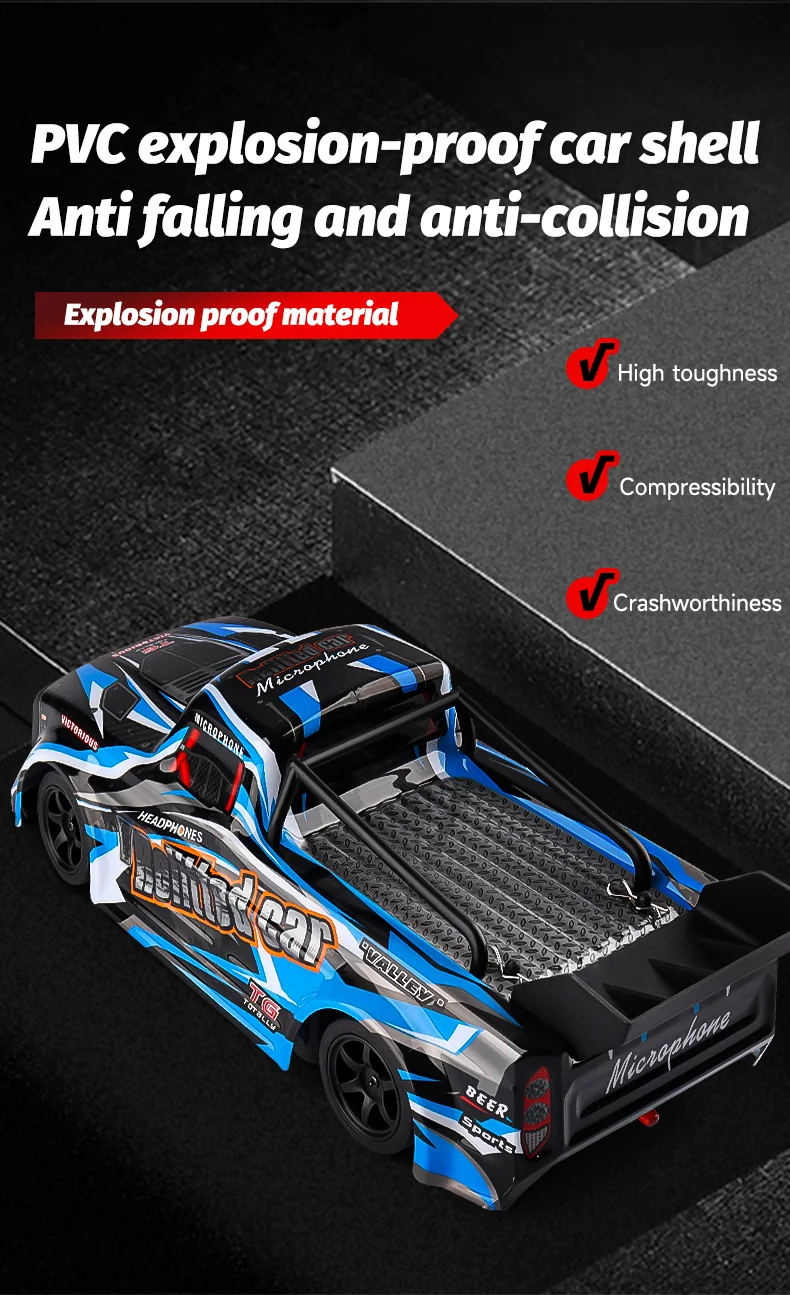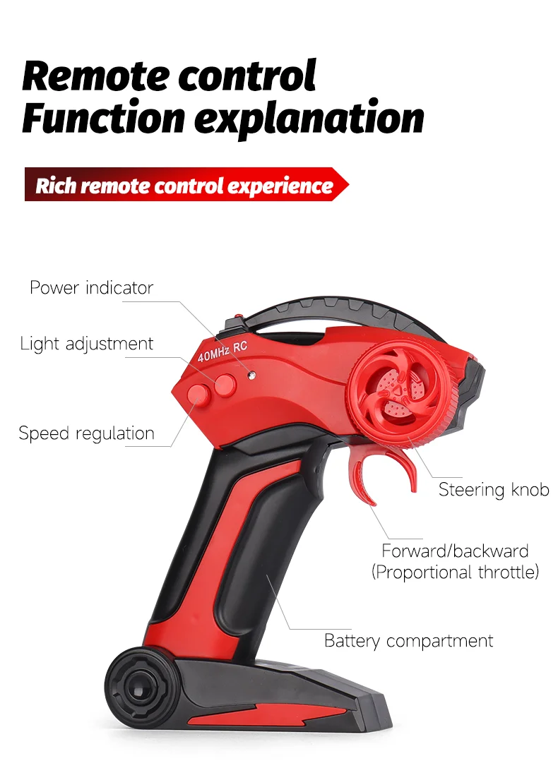 2.4G remote control and rich entertainment functions: The 2.4 GHz fully functional proportional radio control system can provide a stable control signal within a distance of 30 meters, allowing multiple people to play remote control cars at the same time without generating interference.