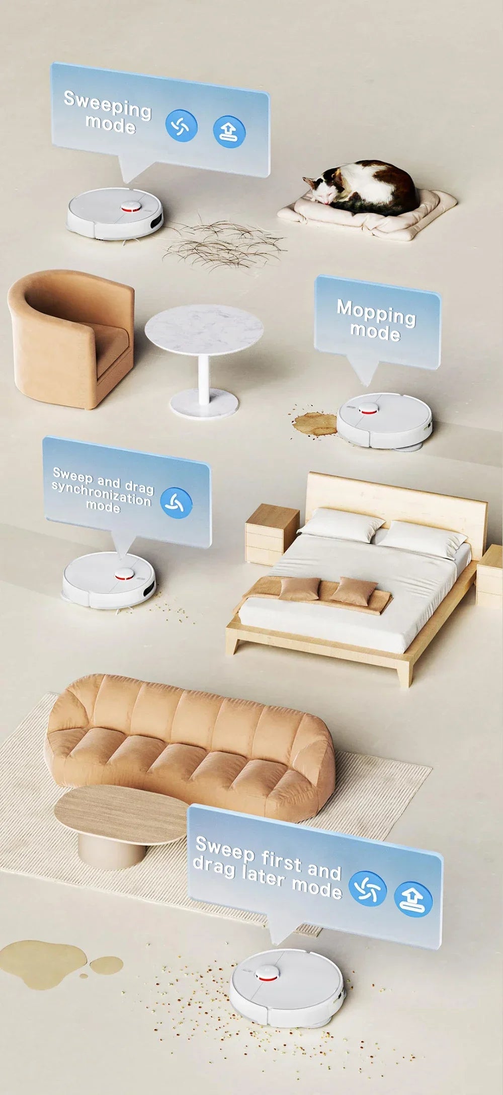 * Upgraded sweep-then-mop mode with four sweep-and-mop modes and four suction modes