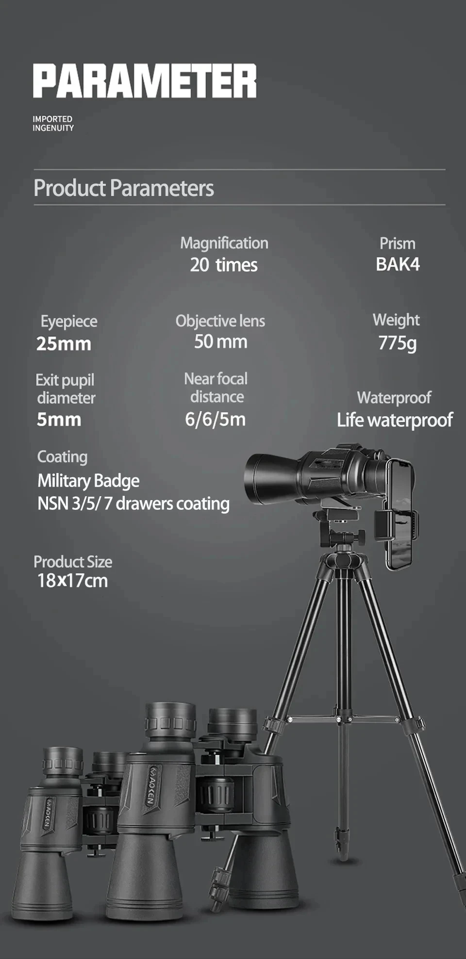 20X50 Binoculars for Adults High Powered Professional Binoculars with FMC Lens Central Focus Ideal for Bird Watching