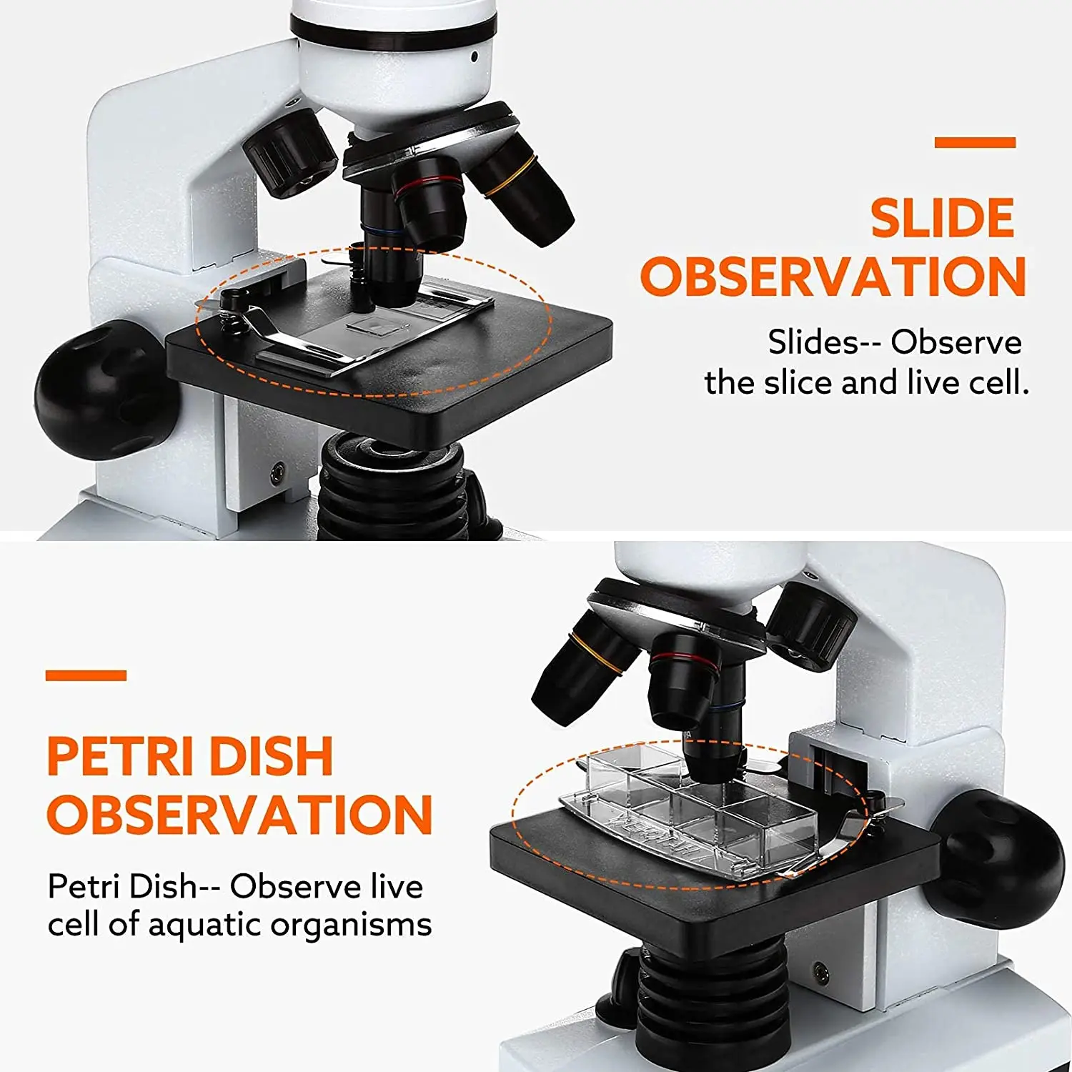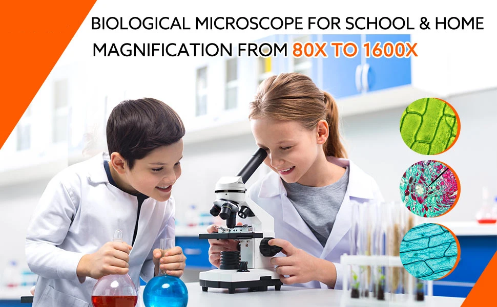 5.【Practical Educational Tool】 : This 40X-1600X biological microscope is designed to help students/ kids/ adults/ beginners/ amateur scientists/ hobbyists exploring the fantastic world of life. It is ideal for school, laboratory, or home teaching, one-on-one instruction.