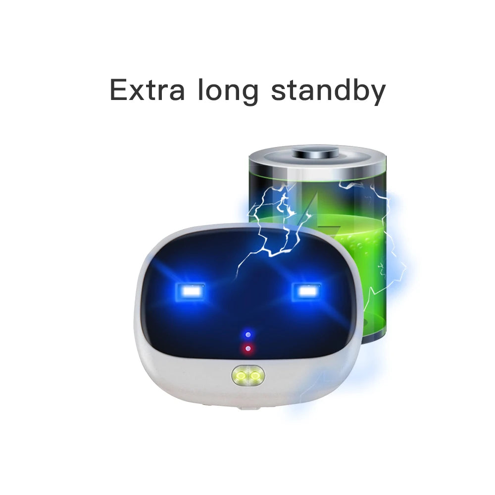 500mAh battery lasts 20-30 days. Magnetic charging (2 hours) with app alerts before battery dies.