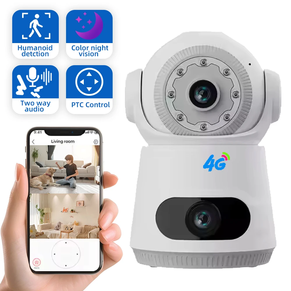 4G Security Camera with SIM Card 8MP 4K Dual Lens Two-Way Audio Indoor Baby Monitor Home CCTV Surveillance Night Vision