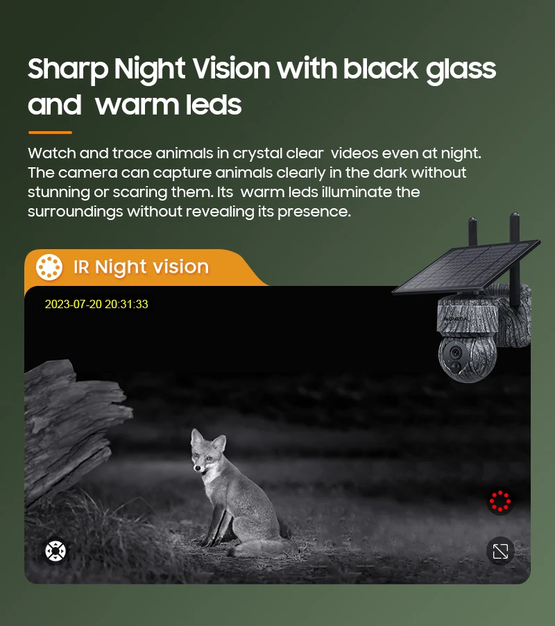 【Continous Power from Solar Panel&Battery】 Equipped with high-capacity battery and camera mount for installing 5W solar panel , this solar powered tree camera provides non-stop power anytime, suitable for anywhere American nationwide where are 4G LTE coverage. this covert trail camera Plus IP65 waterproof and robust body, ideal for wild areas, zoos, barns, farms, ranches, jobsite, cabins, RVs, etc.