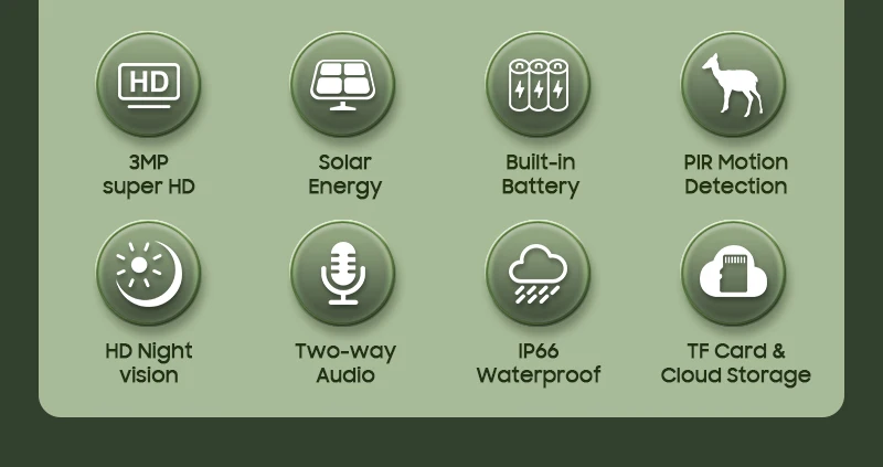 【3MP HD & 360° View】3MP high video solar security camera, infrared night vision can see every detail within 90ft. Seamlessly focus on specific areas or objects of interest within the expansive 360° field of view, ensuring comprehensive monitoring coverage.