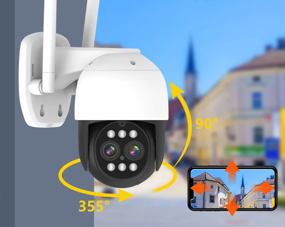 Rotates 355° Horizontally and 90° Vertically.You can control it in the APP directly whenever you want and wherever you are.