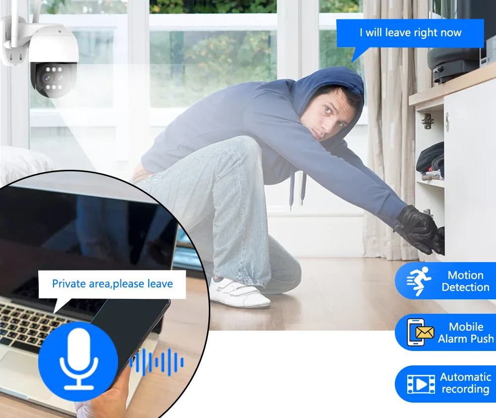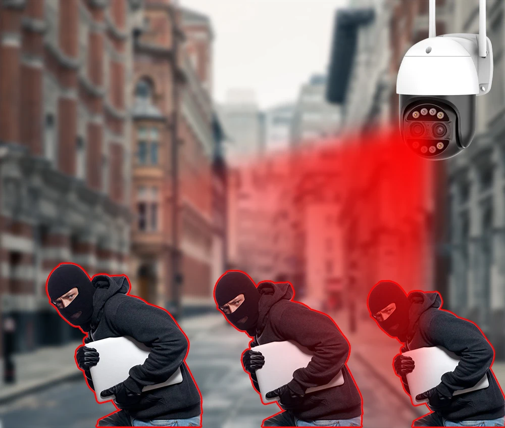 When someone passes through the alarm area, the camera will detect the person's movement. And track people.