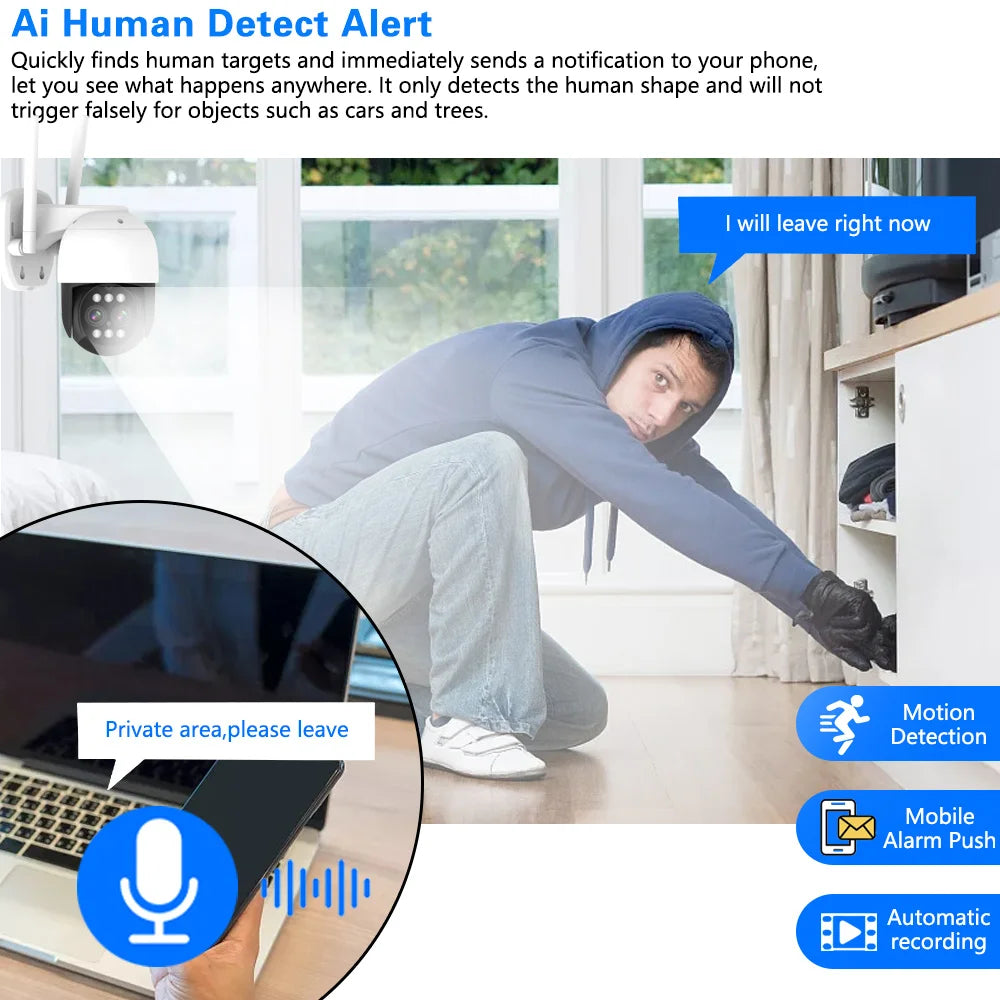 Effectively filter invalid alarms and make the alarms more accurate, it only detects the human movement. When the camera detects the human movement, you will receive the notification that APP pushed.