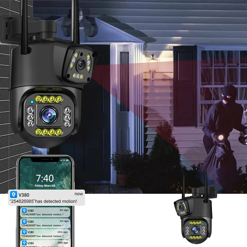 4MP Dual Lens Security Camera 360 Degree View Outside Camera 1080P Surveillance Camera IP66 Waterproof for Home Security