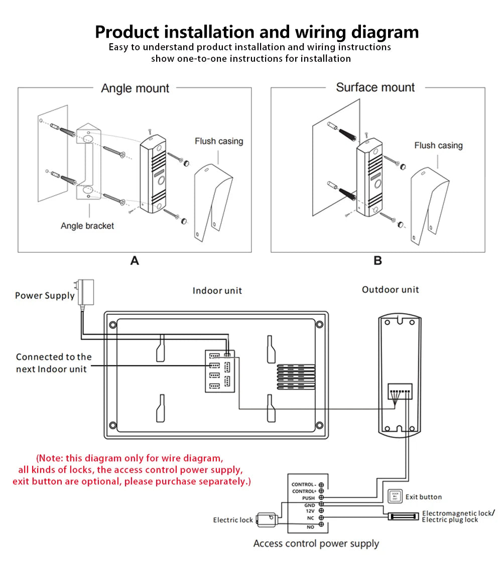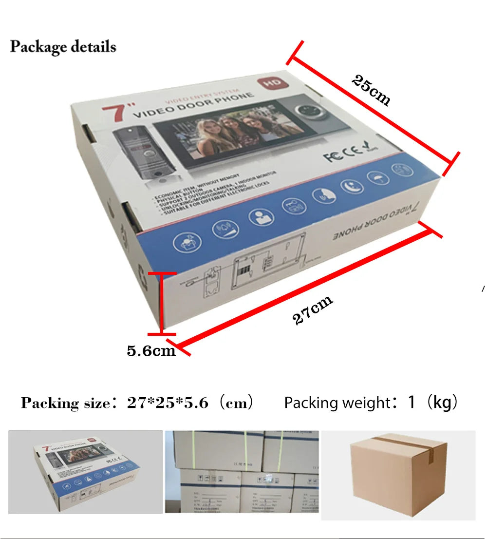 720P Video Doorbell 7‘’ Color Screen Home IntercomHigh-Definition Intelligent Night Vision Electronic Access Control System