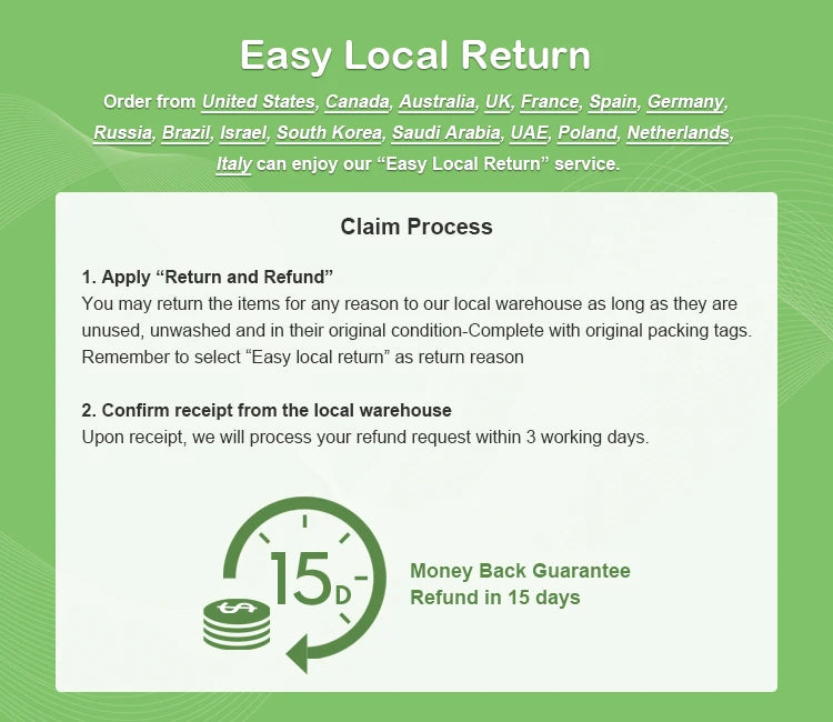 Processing time refers to the time it takes to conduct order verification, tailoring, quality check, and packaging. All orders are sent to our suppliers for dispatch within 24 hours after the order is placed. Order processing takes an additional 2–4 days.