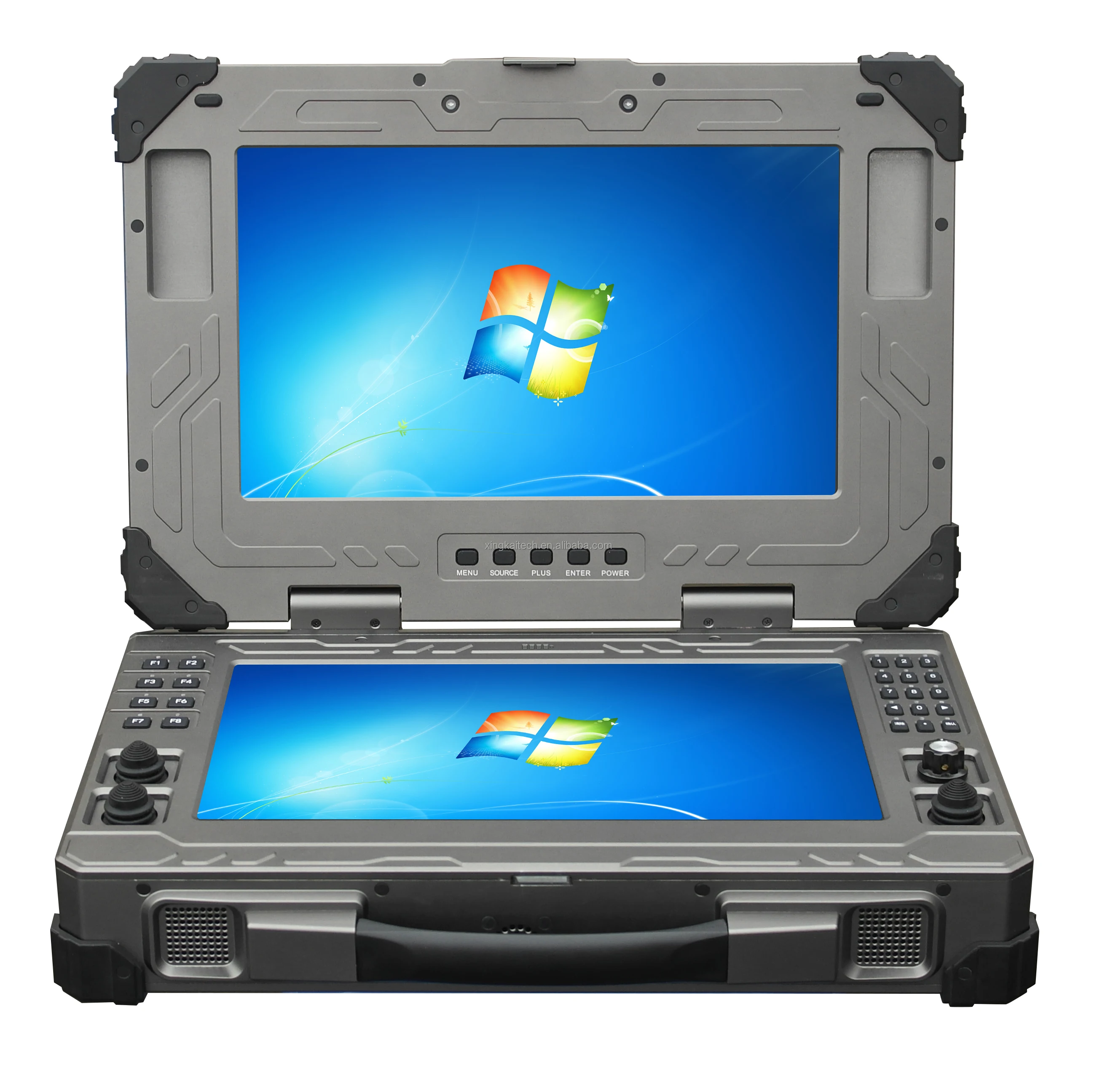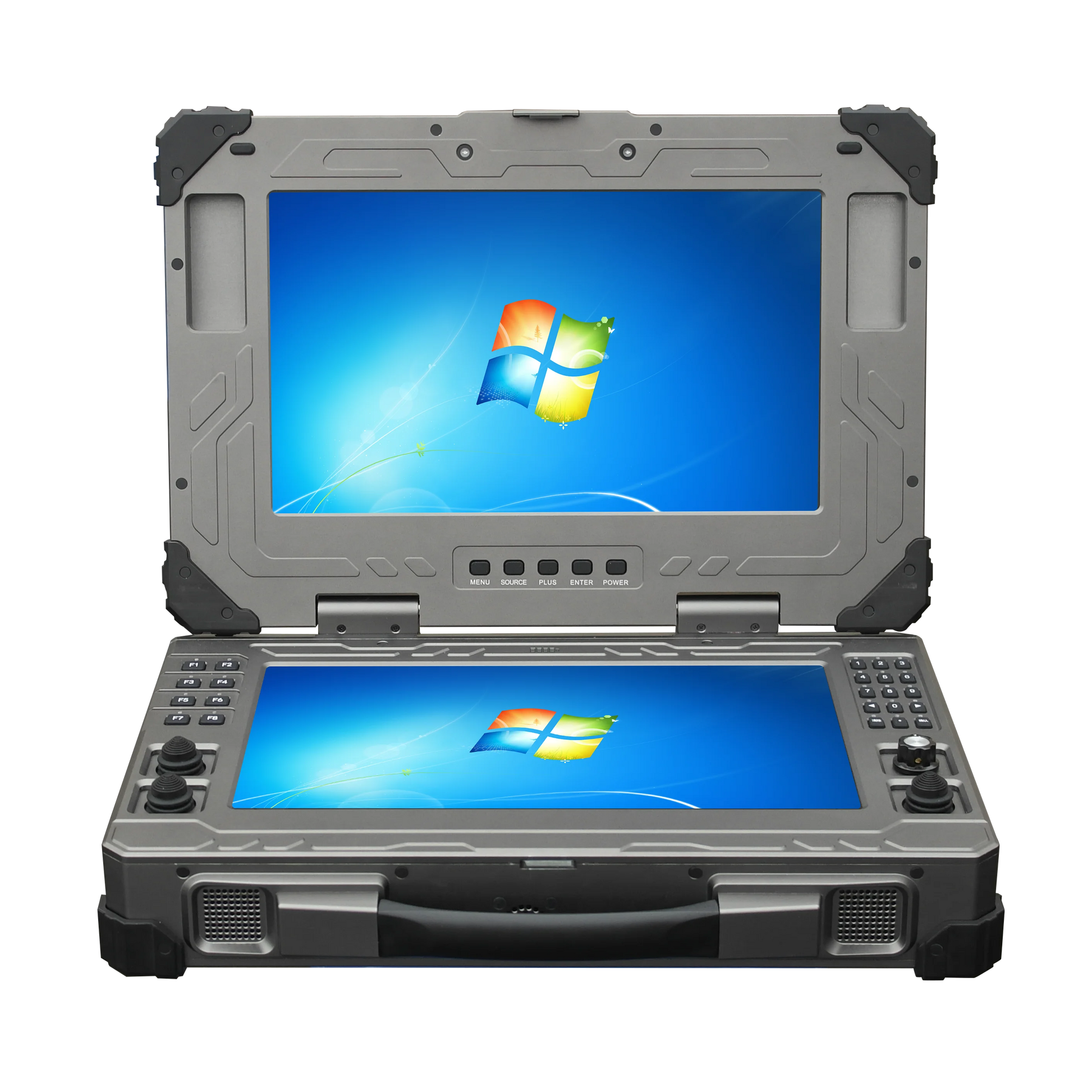 Two high-brightness LCD displays with screen brightness adjustment,memory and solid state disk size selectable; two Gigabit LANports, 8 customizable keys; long Endurance with lithium battery, internal space reserved for secondary development; whole aluminum alloy with hard anodized sandblasted finish; operating system supports Windows 7 / Linux system.