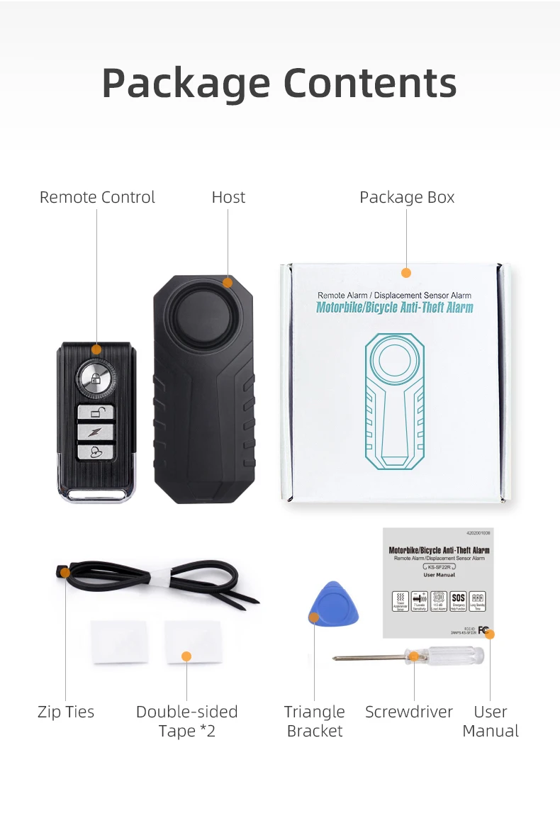 Anti-theft Alarm for Motorbike/Bicycle 113db High Volume Vibration Wireless Remote Control Electric Bell Sound Find A Vehicle