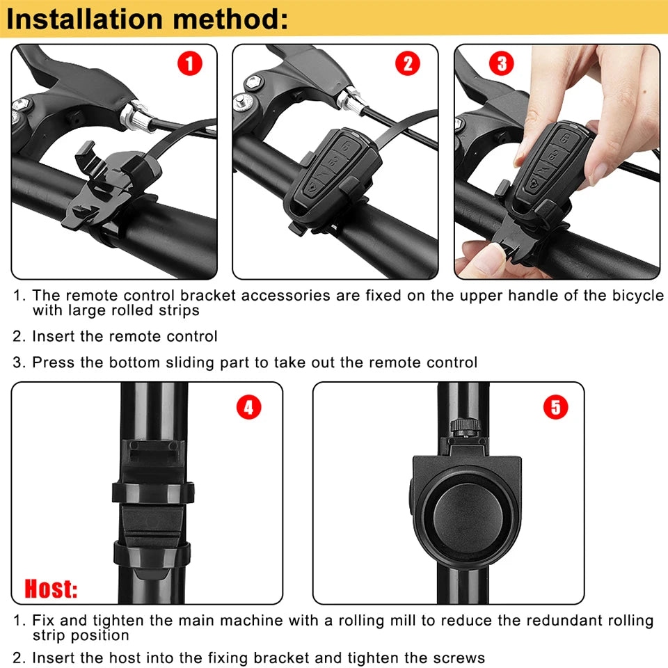 ● IPX5 waterproof and bracket installation: The air of the bicycle alert is very good, and it can also protect the safety of the car in rainy days and snow weather. Light and small hosts can be installed in any position of cars with cable ties.
