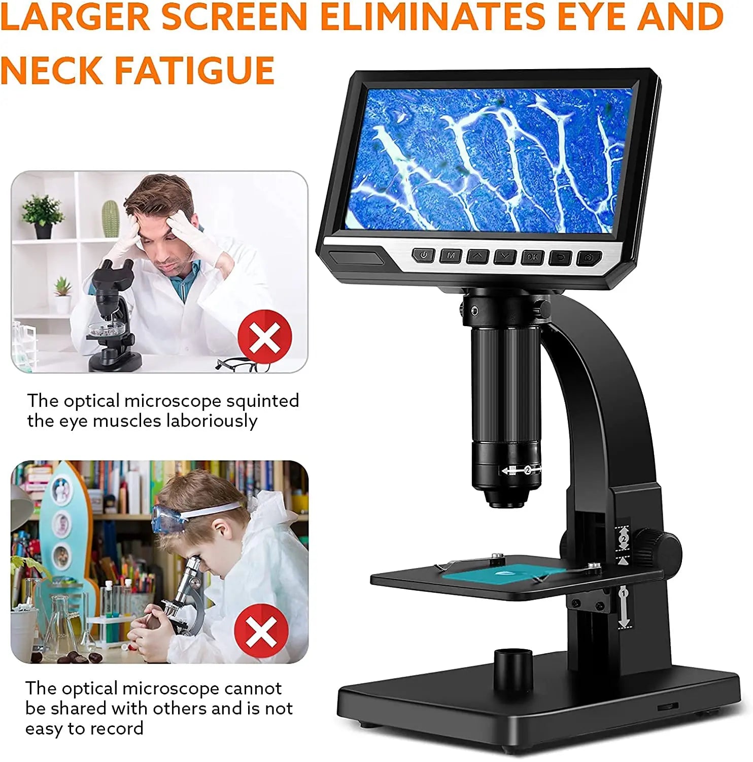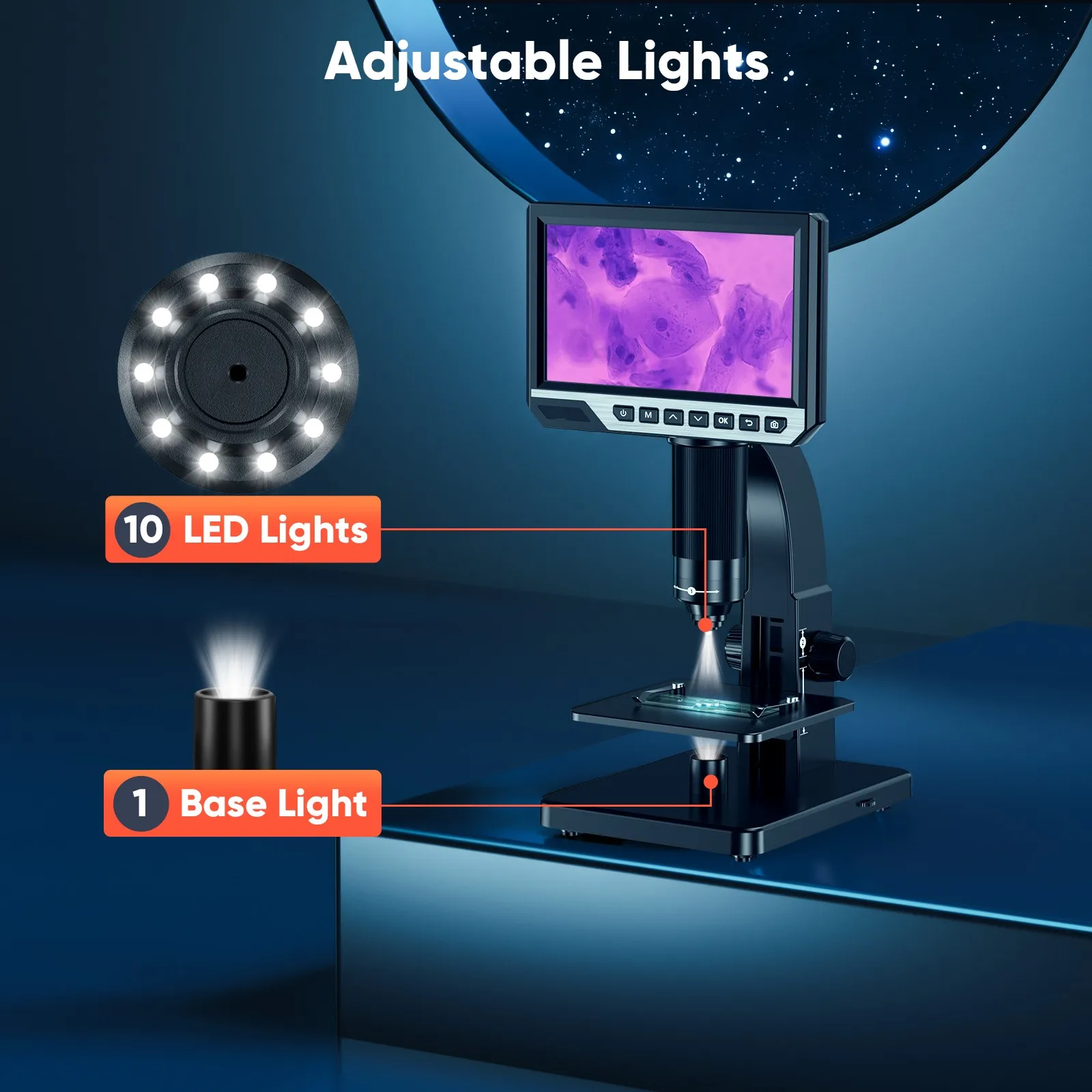 microscope is an upgrade to the traditional microscope. Equipped with 11 LED lights, there are two lenses with different magnifications, not only for daily observation, but also can for observing microorganisms. It supports multiple languages and multiple systems and has a wider range of applications.