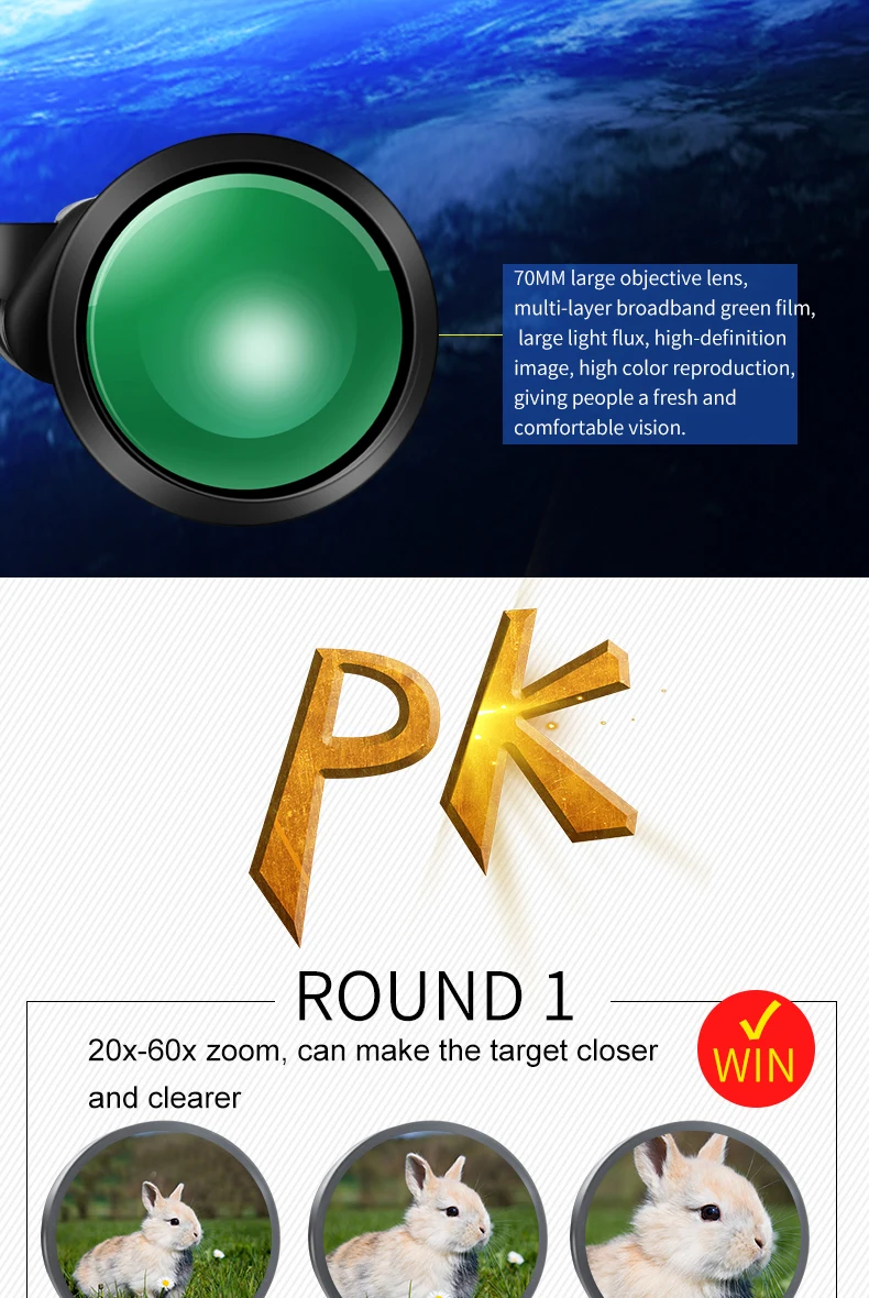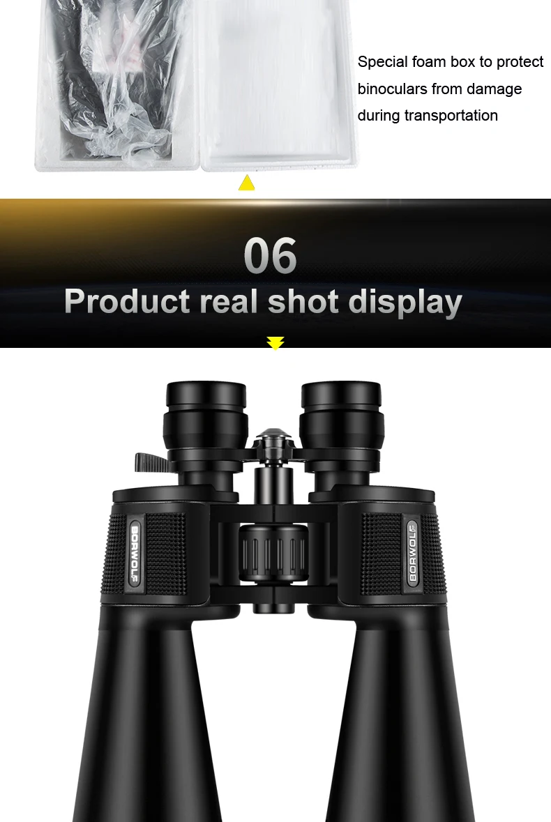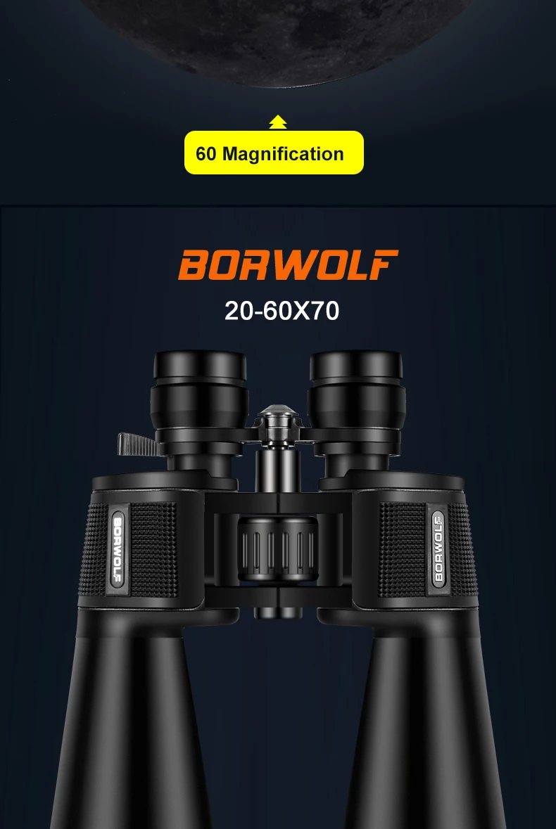 BORWOLF Large Objective lens 20-60X70 Binoculars FMC Optical High Power Hunting Birdwatching Telescope Fo rMoon Watching
