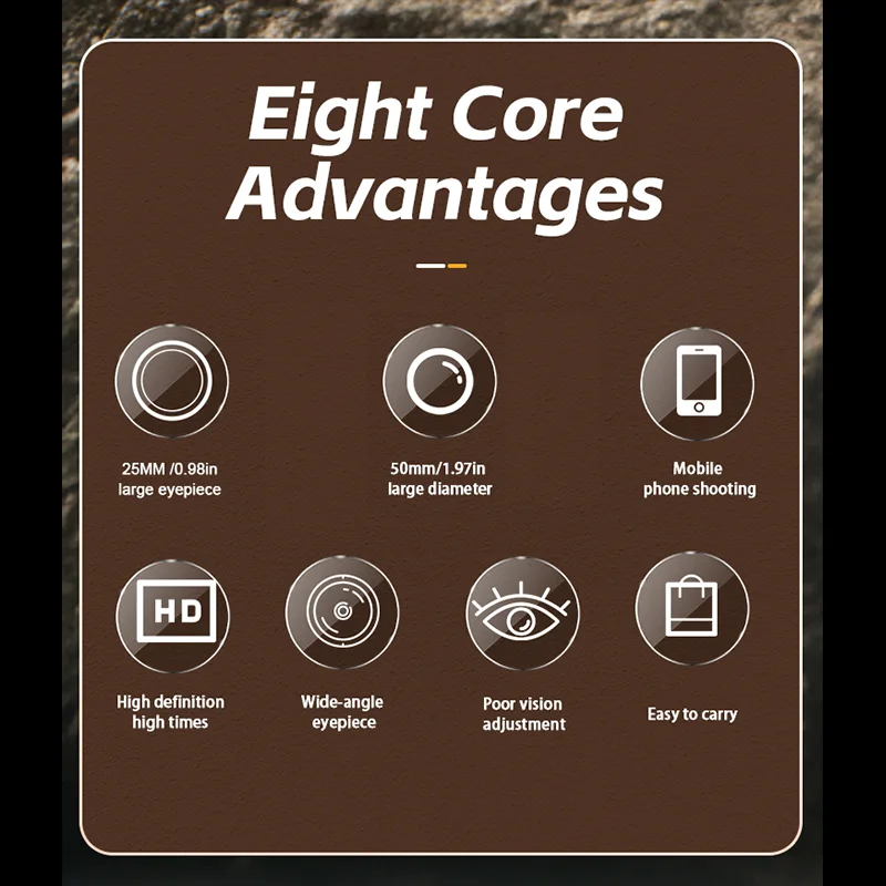 Bronze-colored high-definition 10x 10X50 binoculars, FCM broadband coated, 50MM large objective lens, 25MM large eyepiece