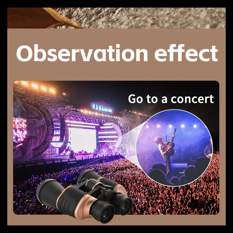 Bronze high-definition 10x 10X50 binoculars, mesh format, anti-slip embossed FMC, multi-layer broadband coating, 50MM large objective lens, 25MM large eyepiece, with storage case, telescope rope, wiping cloth, suitable for hunting, bird watching, bee hunting, traveling, watching sports games, hiking, exploration, concerts and music festivals