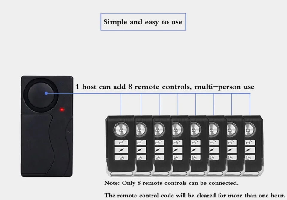 Add More Remotes And Alarms. You Can Program Multi Remotes for One Alarm, Also Can Program One Remote for Multi Alarms;