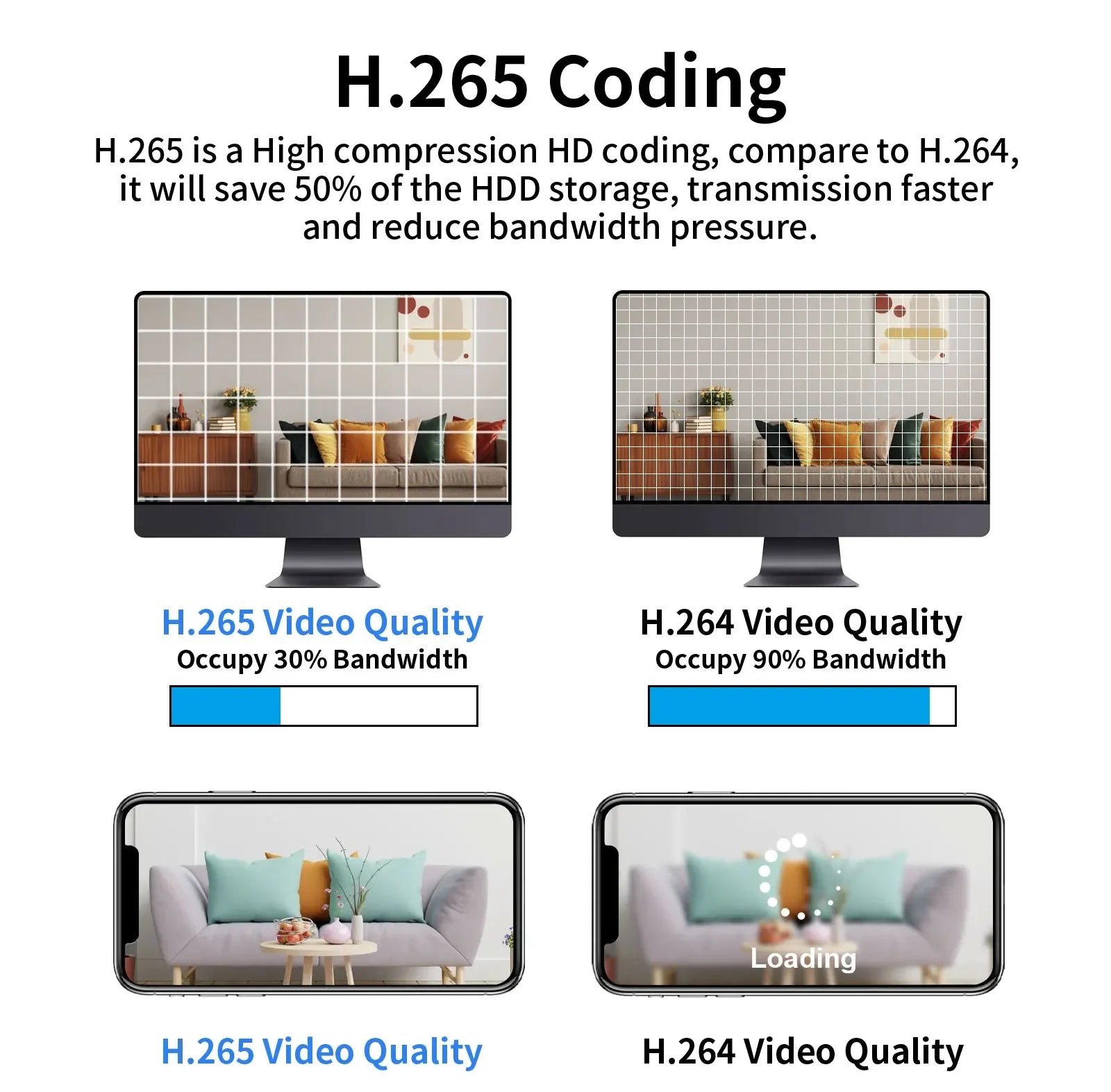 H.265AI More Clear , HD resolution offer you best image quality in a lower bit rate.Save more storage space,can reduce 40%-50% file size,save your HDD storage space and reduce your purchase cost.
