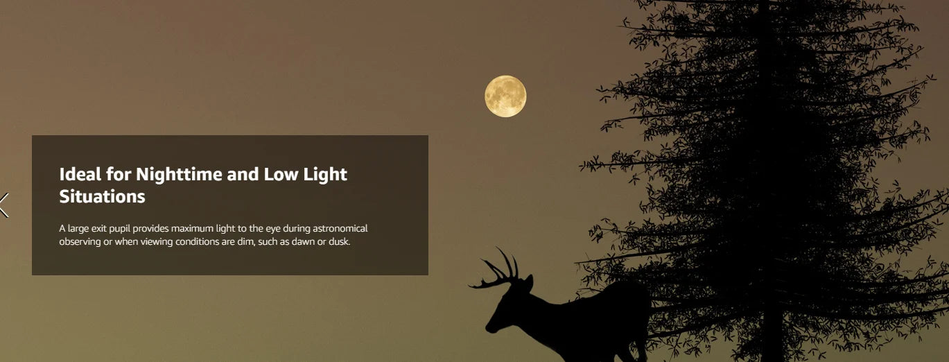 Large exit pupil provides maximum light during nighttime and low light viewing sessions