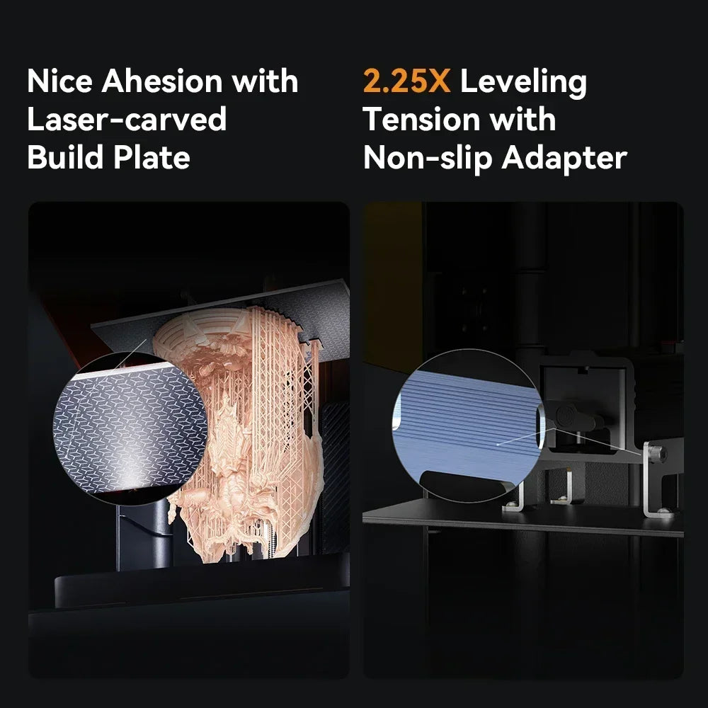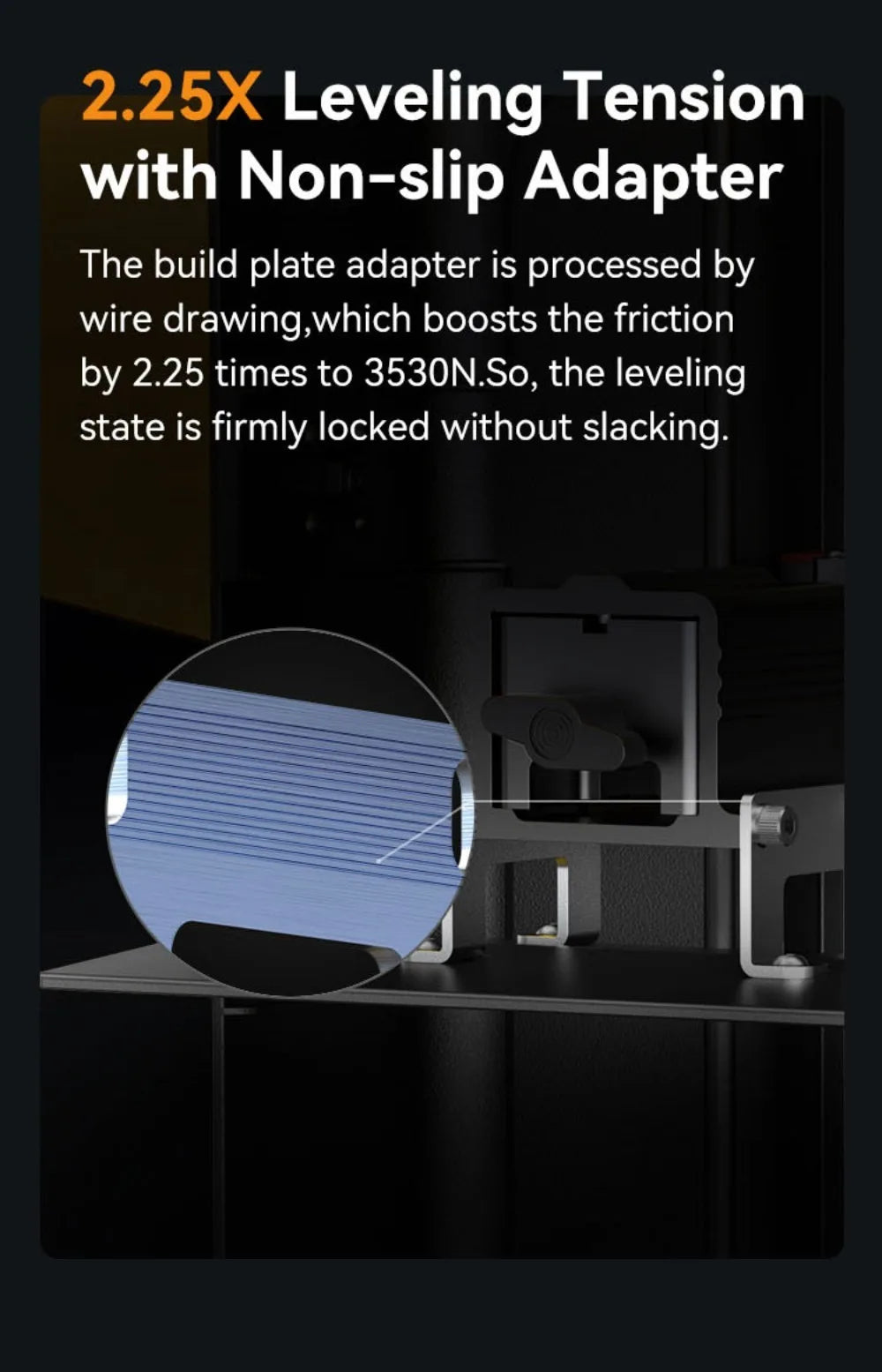 The build plate adapter is processed by wire drawing, which boosts the friction by 2.25 times to 3530N. So, the leveling state is firmly locked without slacking.
