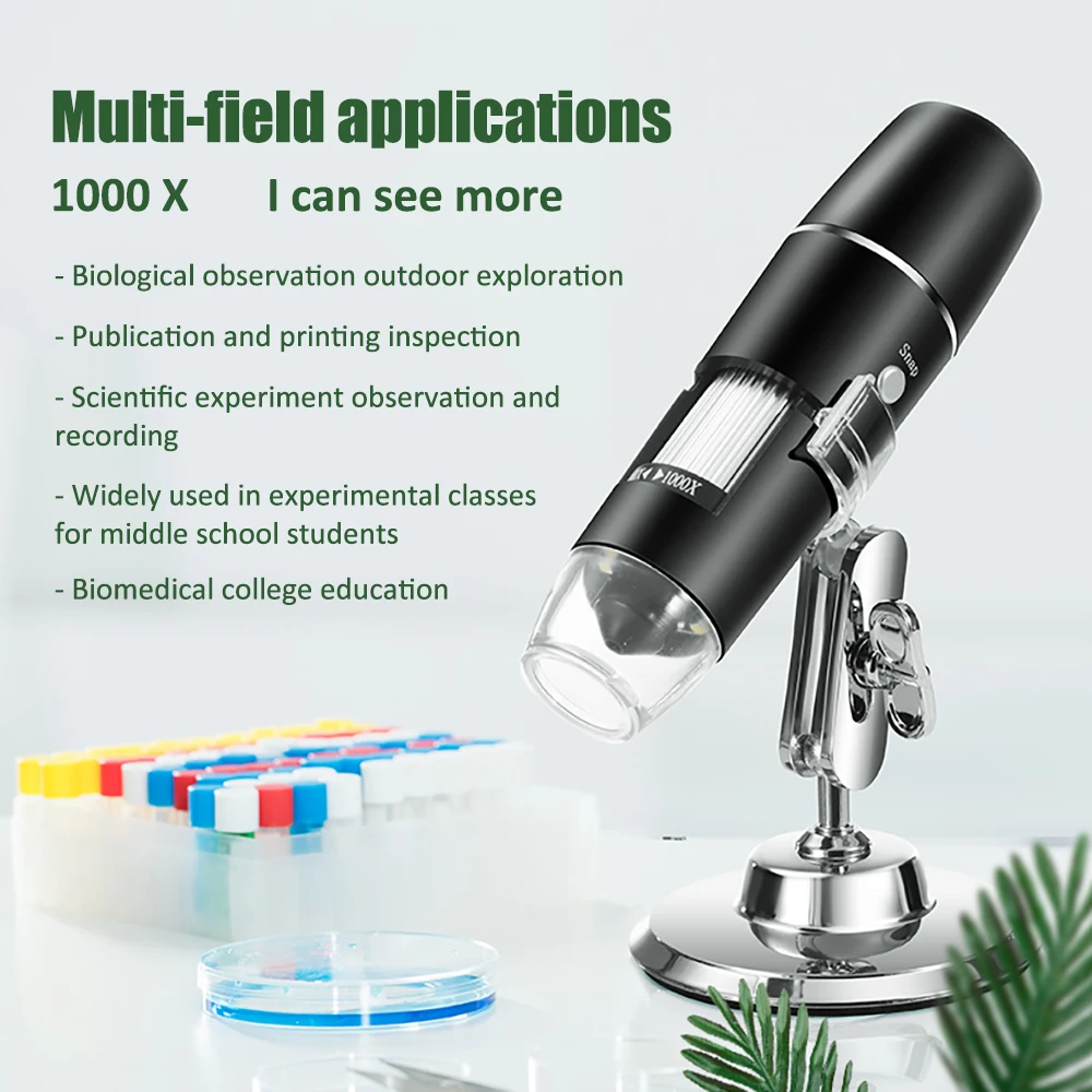 Digital Electron microscope WIFI 50x to 1000x Magnification Adjustable Endoscope with 8 LEDs for iOS Android Smartphone Tablet