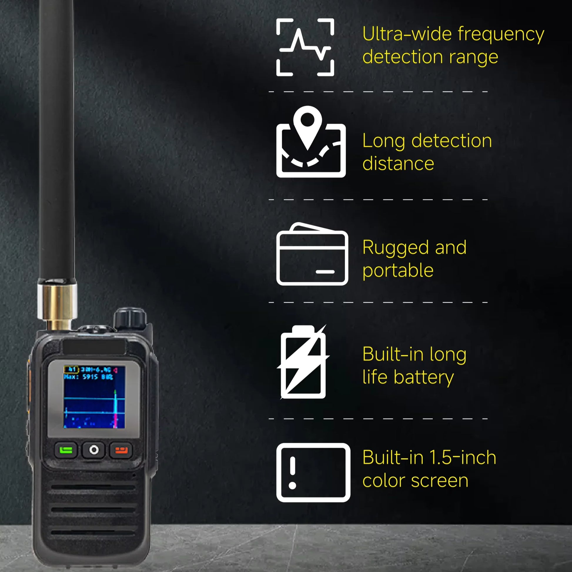 Drone Detector Anti Drone Detection 3 Language 30MHz-6.4GHz Ultra Wide Range Built-in 6000mah Battery for UAV Accurate Detection