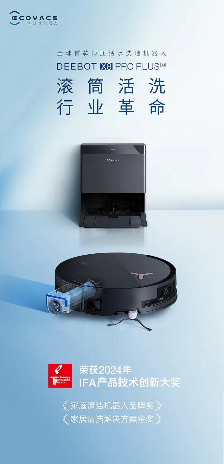 Ecovacs Deebot Vacuum Cleaner Robot X8 PRO PLUS AI Floor Scrubber Robot Self-cleaning Sweeping Machine Automatic Dust Collection