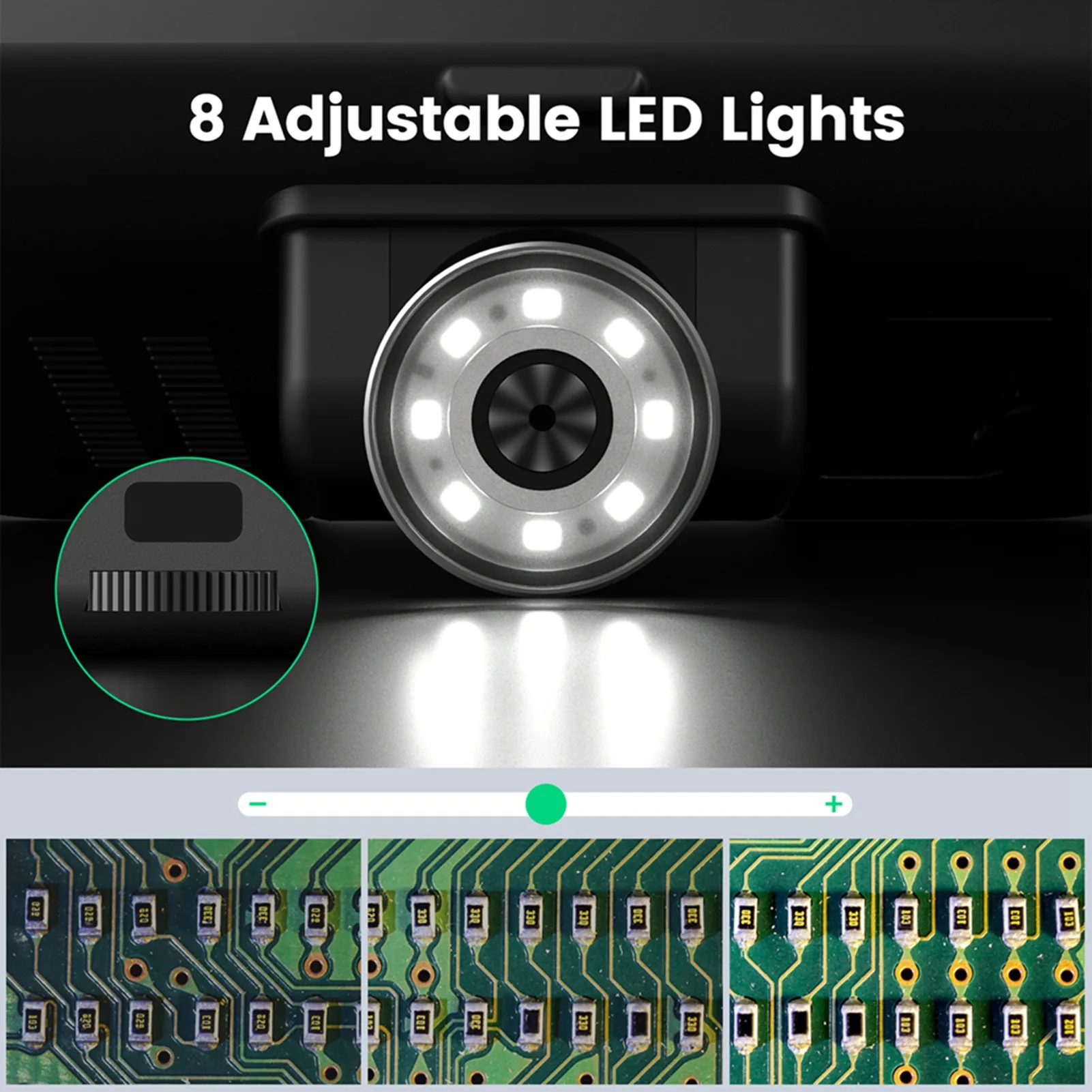 7. 【LED Illumination Light】: 8 LED lights around the bottom of the lens \u0026 2 auxiliary LED lights at the base of the tripod, adjustable brightness, make the imaging sharper and clearer.
