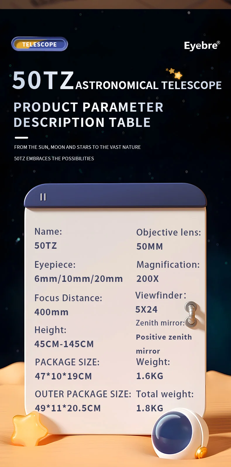 Eyebre50TZ Professional High-definition Children's Astronomical Telescope 200X To See The Moon and Stars Bird Watching Monocular