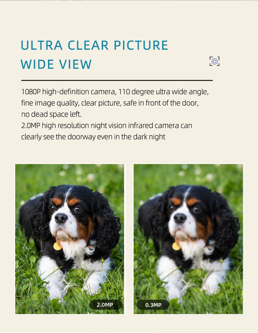 1.A larger visual range allows you to see the situation at the door more clearly, which can better protect family property. (It is recommended that the installation height be above 1.5M to get a better view.)