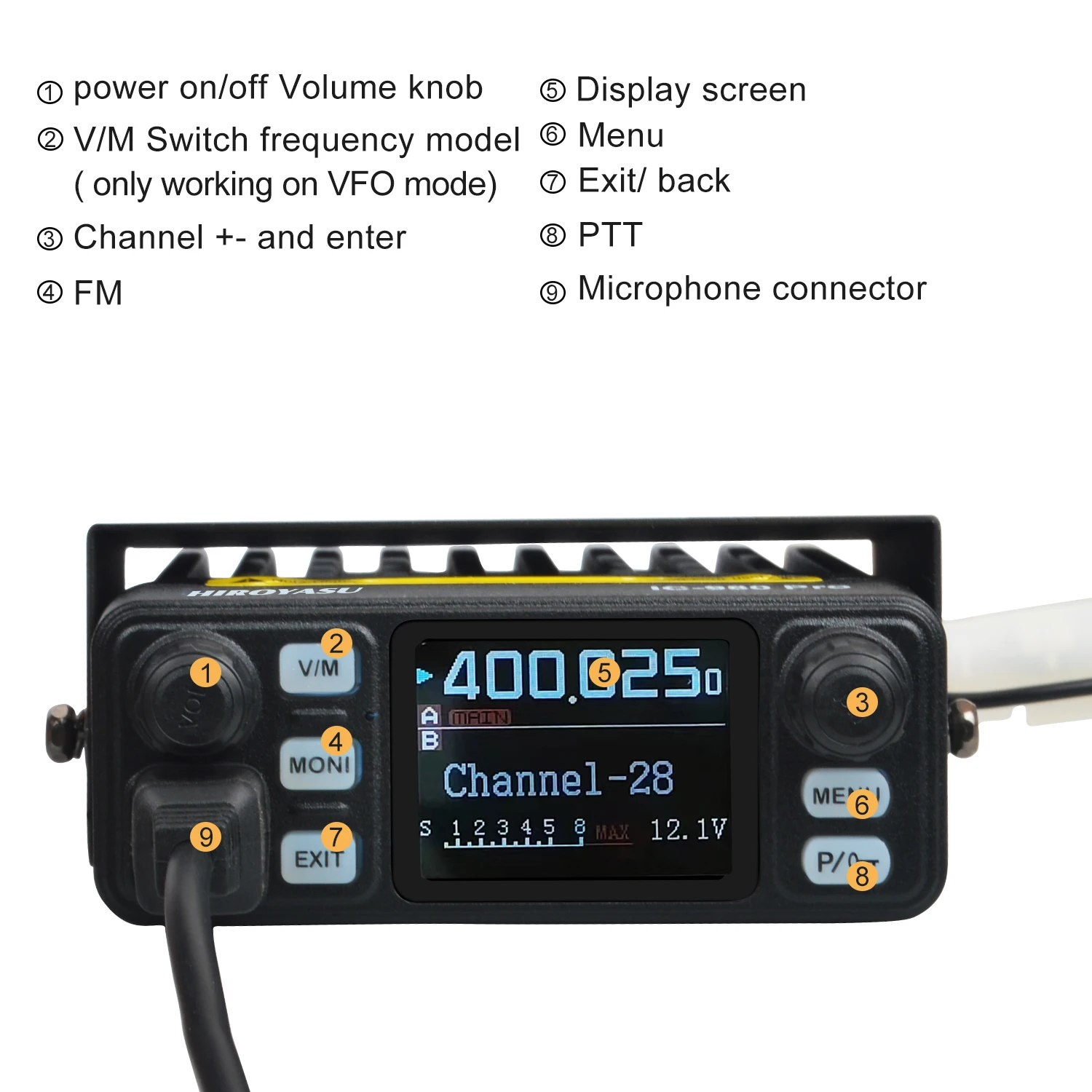 HIROYASU Walkie Talkie IC-980Pro VHF UHF Dual Band Dual Watch 25W 200Ch Background Noise Reduction Mini FM Vox Scrambler Mobile Radio IC-980 Pro Transceiver with 13.8V Car Cigarette Lighter Input Power Cable