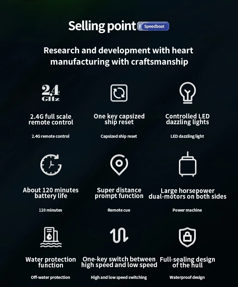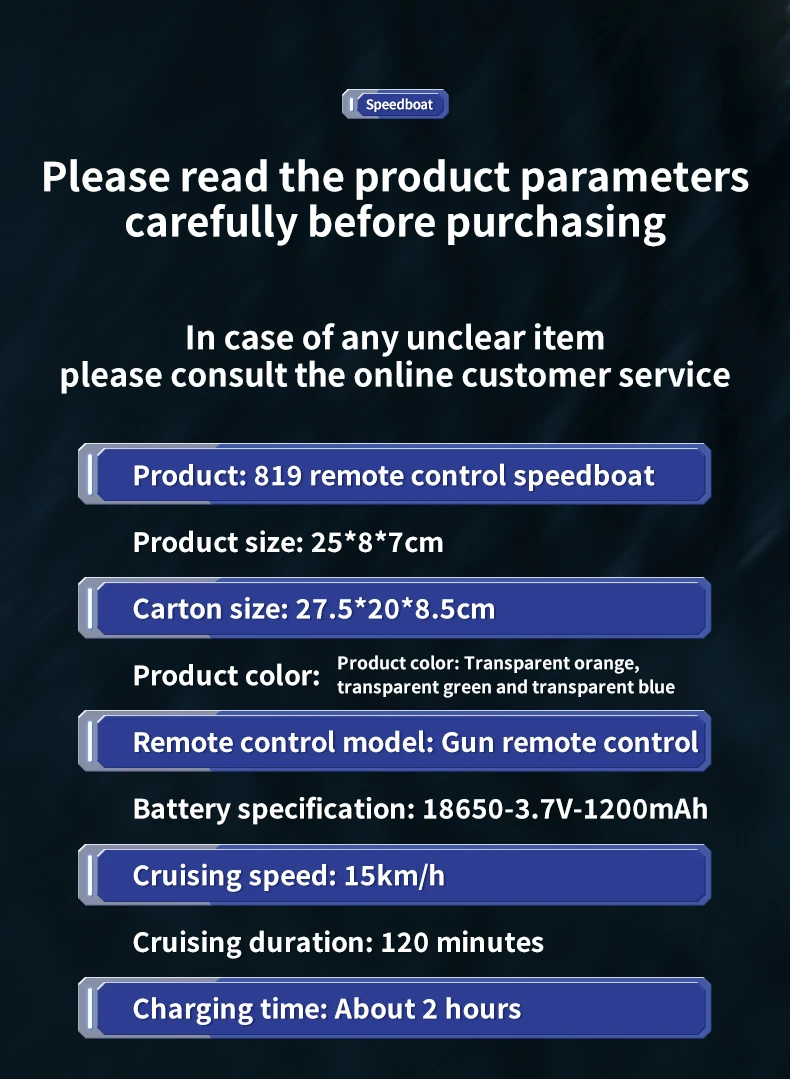HJ819 RC Boat 2.4Ghz 15km/h High-Speed Remote Control Racing Ship Water Speed Boat Children Model Toy