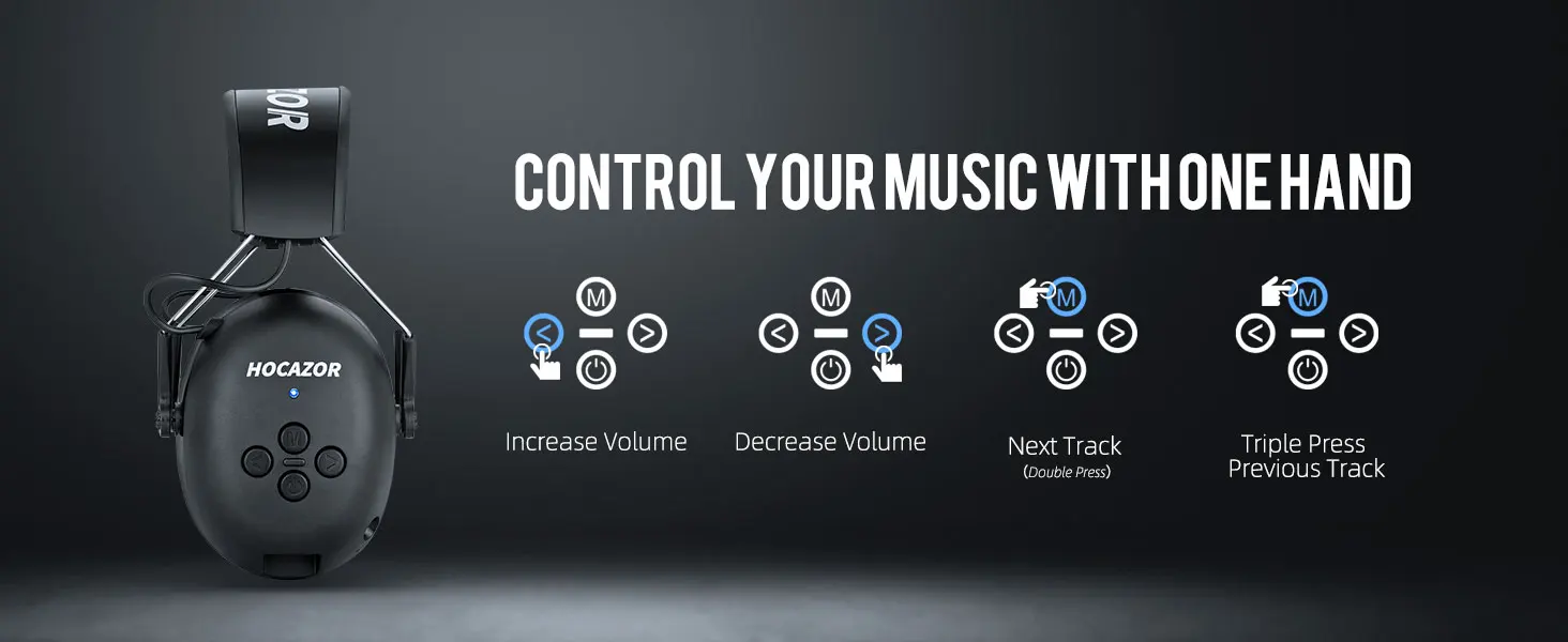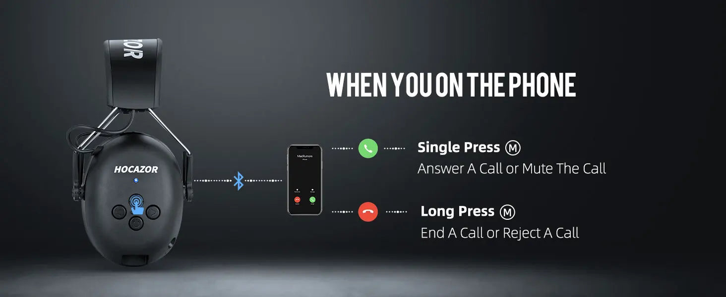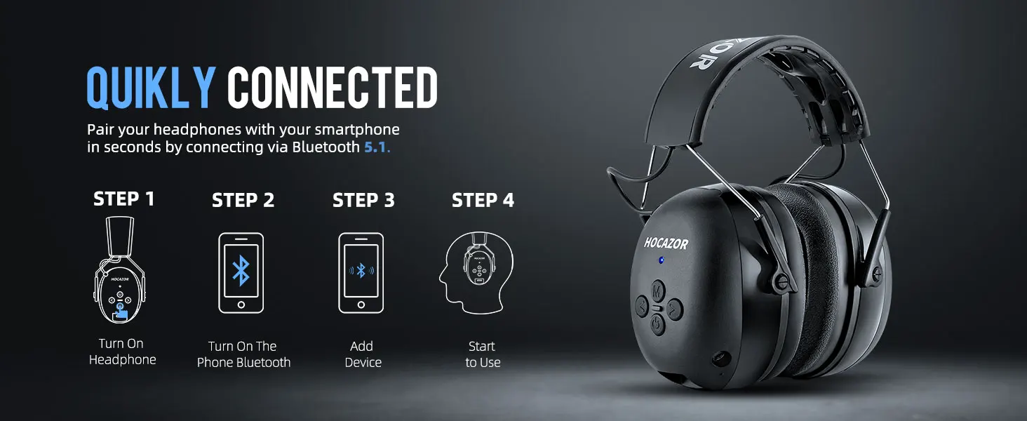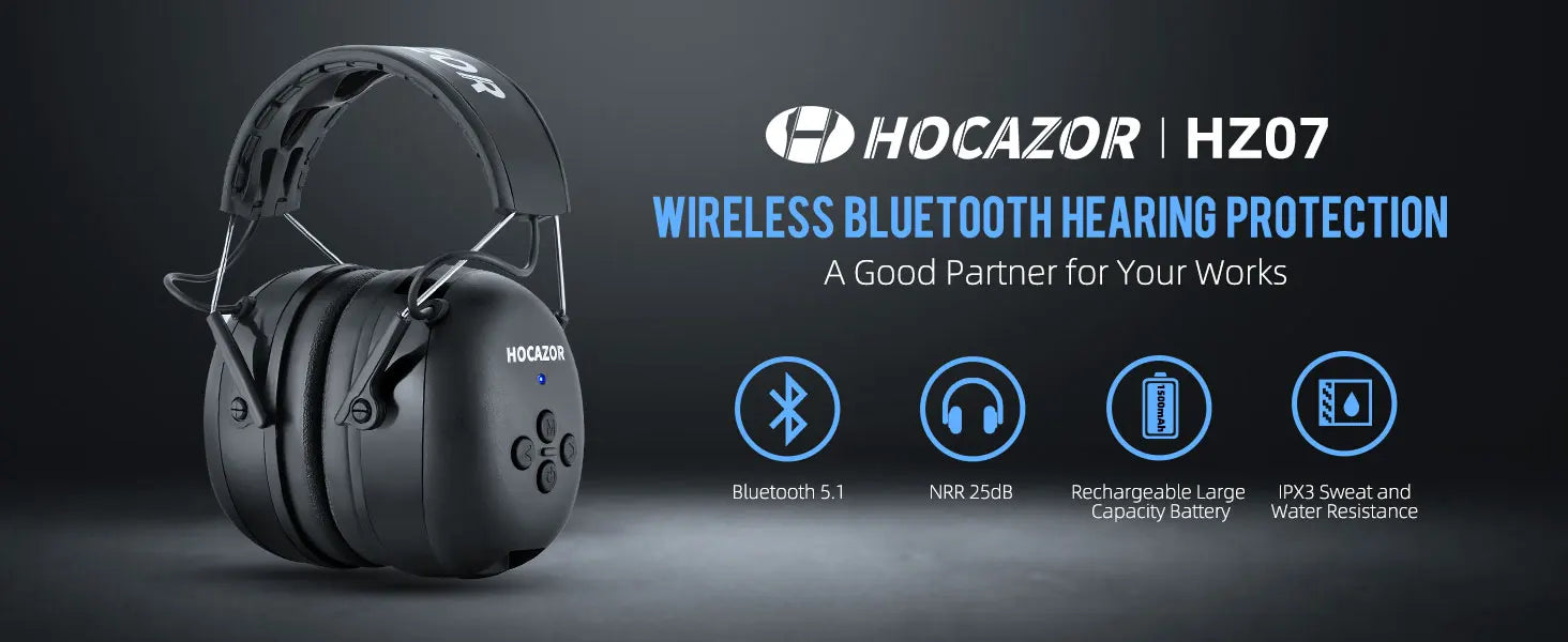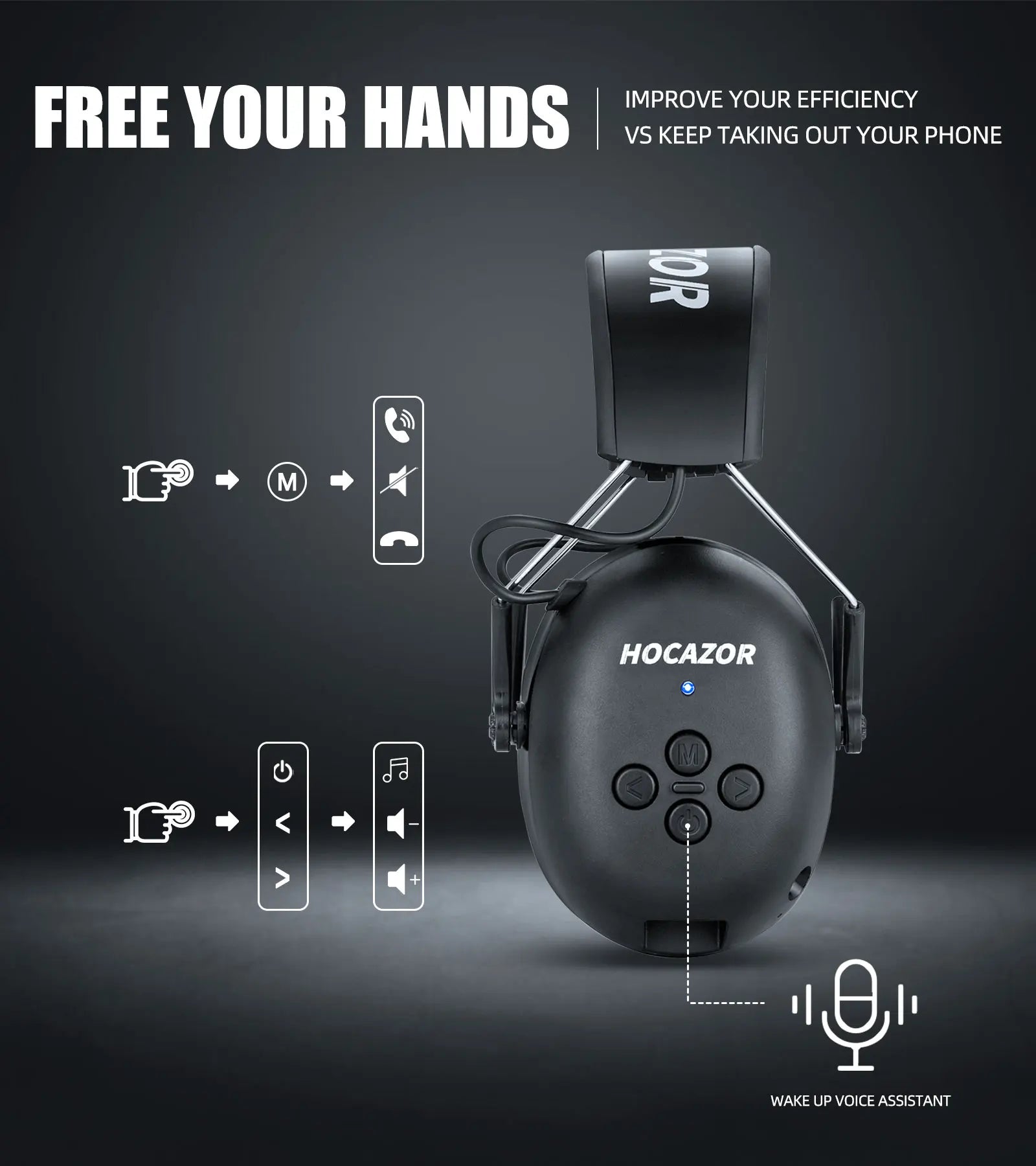 HOCAZOR Electronic Hearing Protection Bluetooth 5.3 Music Headphones for Mowing Noise Cancelling Earmuffs Security Protecter