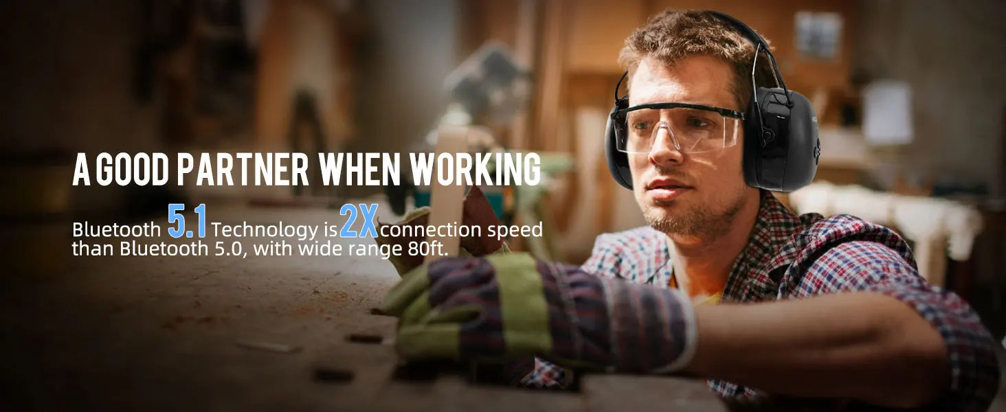 4.Loud Enough Music - Delivers loud enough volume and unique sound quality while maintaining NRR 25dB of noise reduction, so you can immerse yourself in your music and work happily. Built-in 2 microphones provide sufficiently clear sound quality