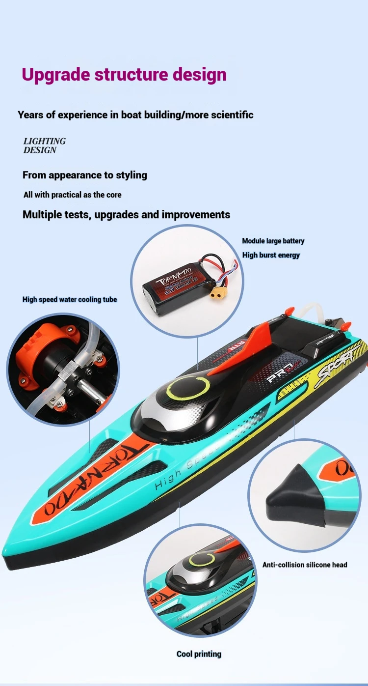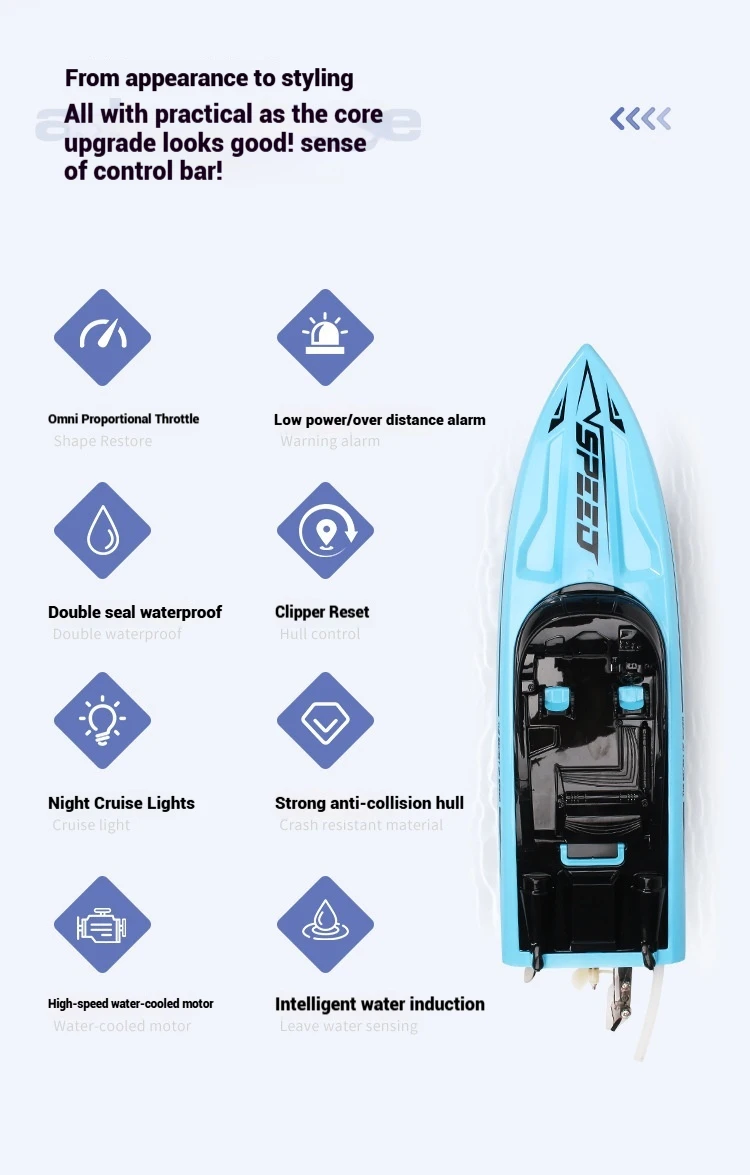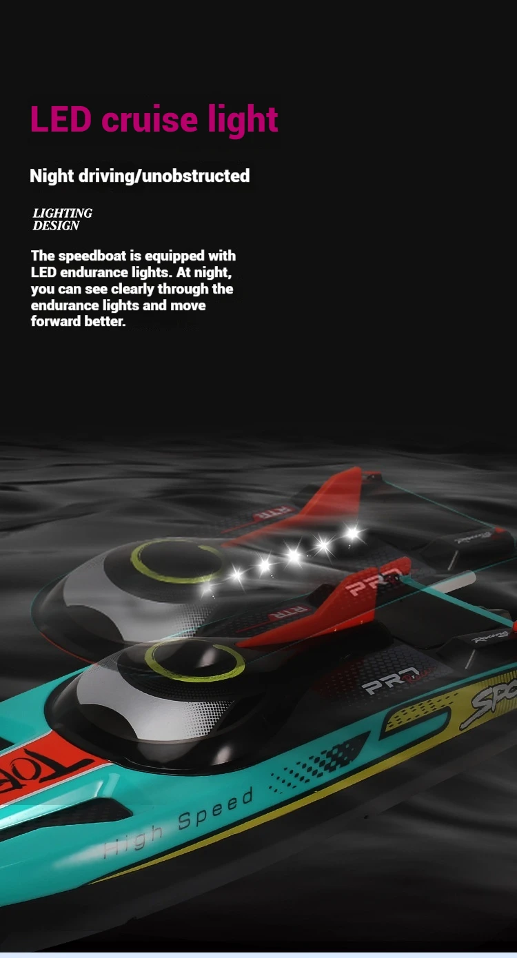 Featured Features: Extra large speedboat, water-cooled cooling, high-speed brushless motor with lighting and automatic return function