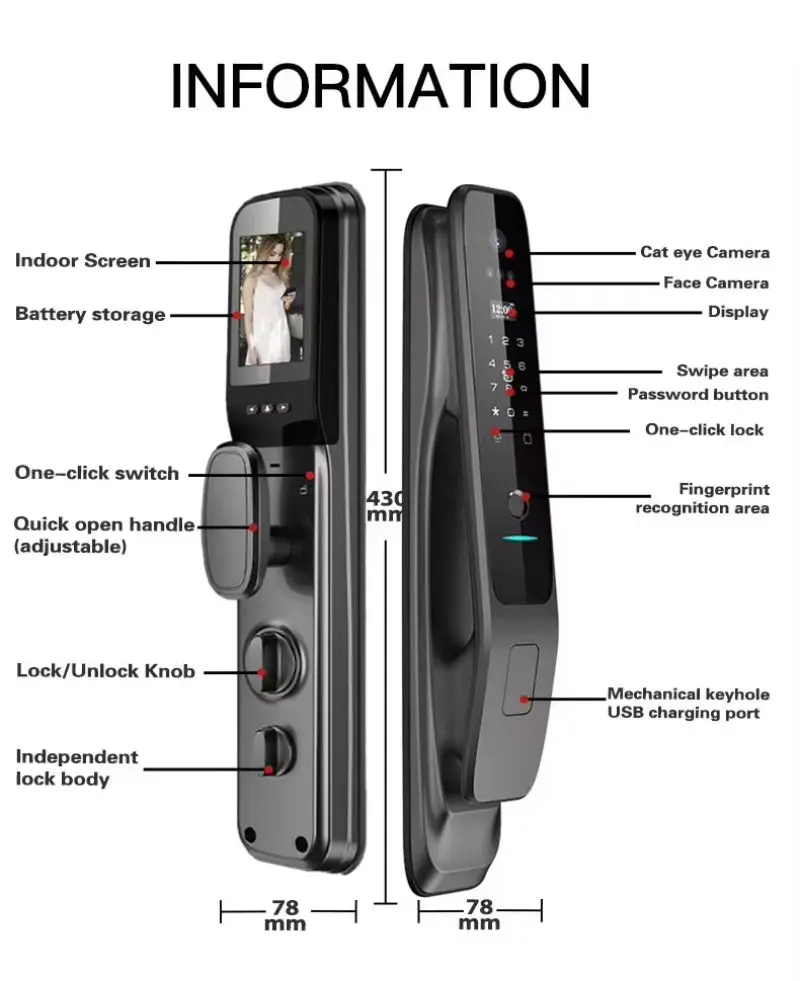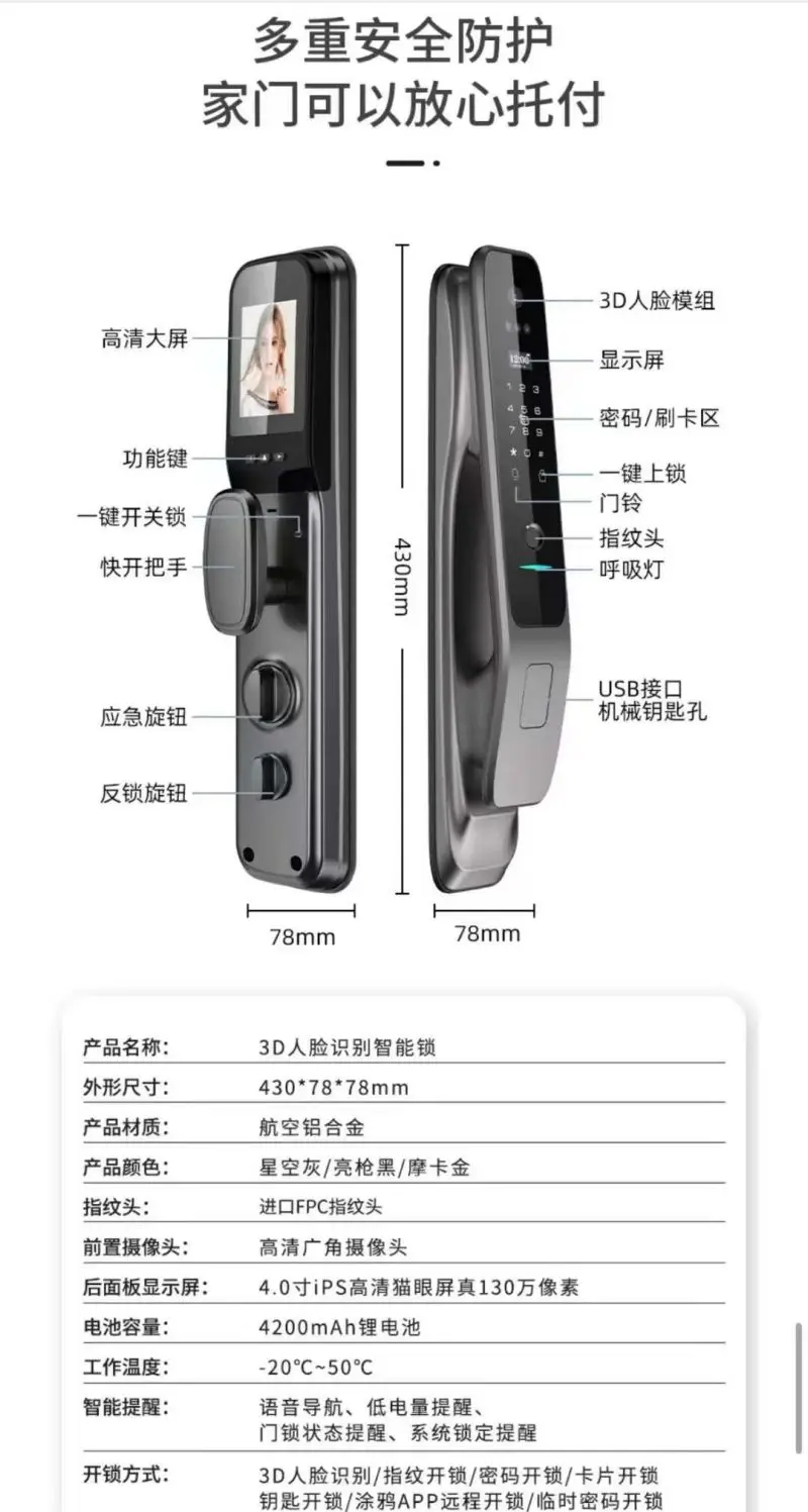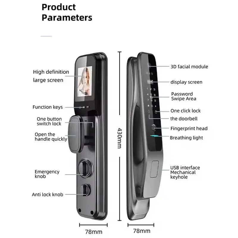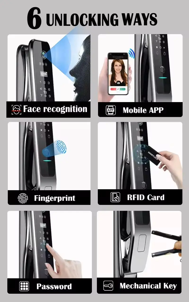 Ways To Unlock: Card,FINGERPRINT,Bluetooth,Mechanical Keys,Password,App,Face Recognition,WiFi