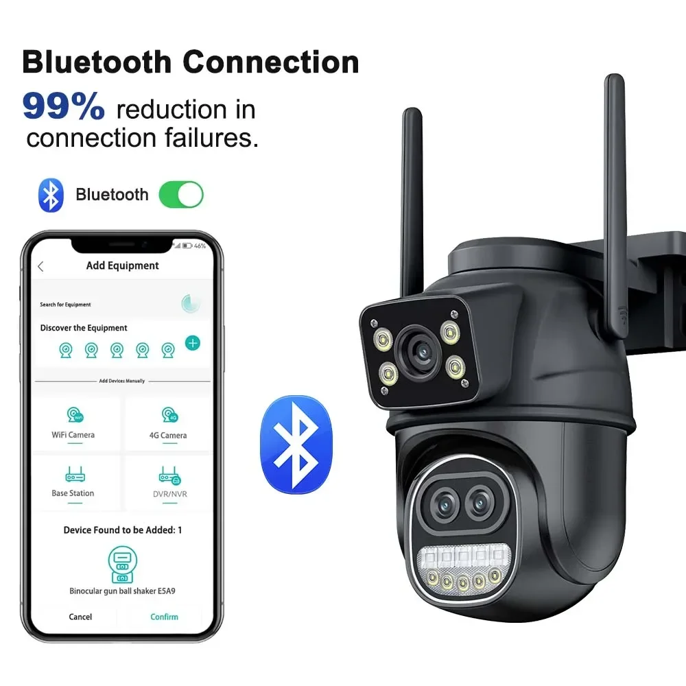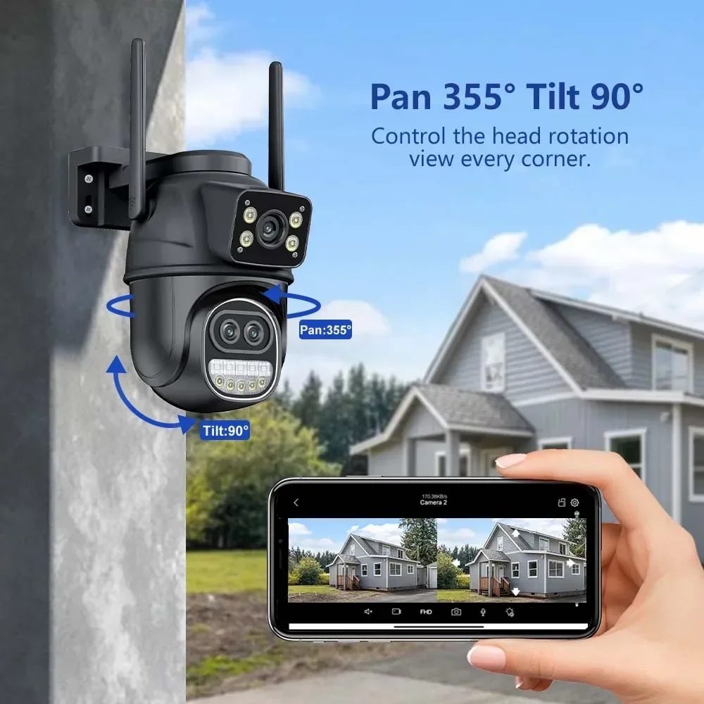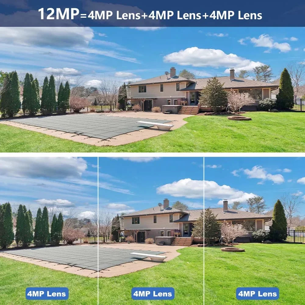 12MP 6K Outdoor WIFI Camera 8X Zoom Three Lens Dual Screen 360° View PTZ Video Camera Auto Tracking Home Security CCTV 8MP Surveillance Camera