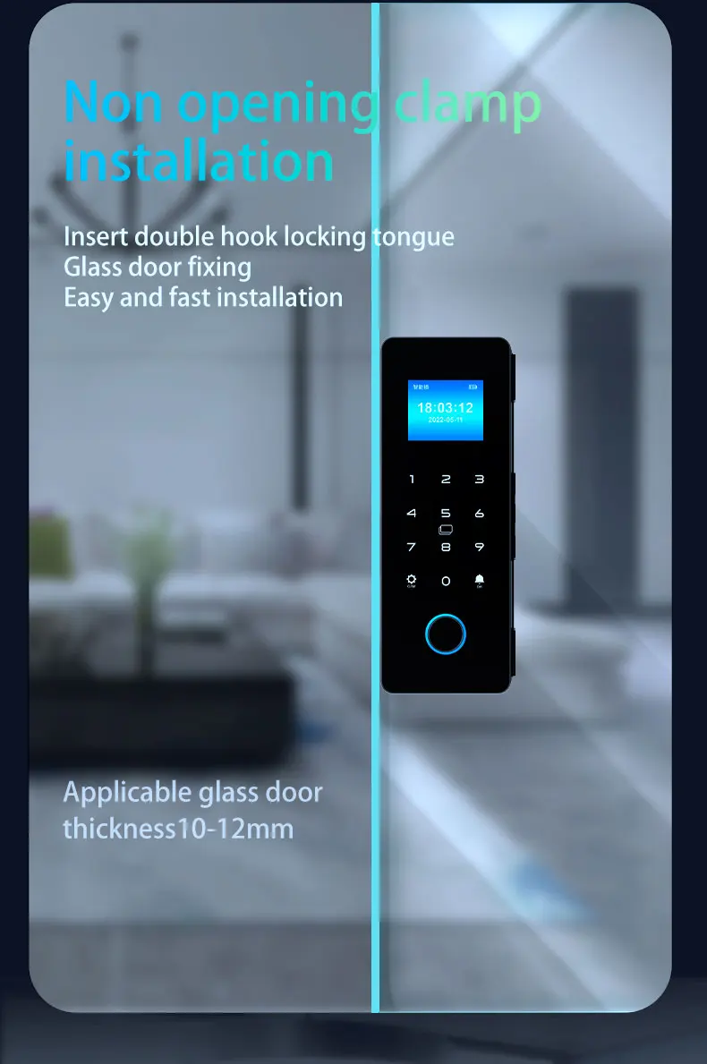 IP65 Bluetooth Smart Glass Door Lock with HAHALock App - Fingerprint/RFID/IC Card Access, Dual Hook Lock & Attendance Tracking