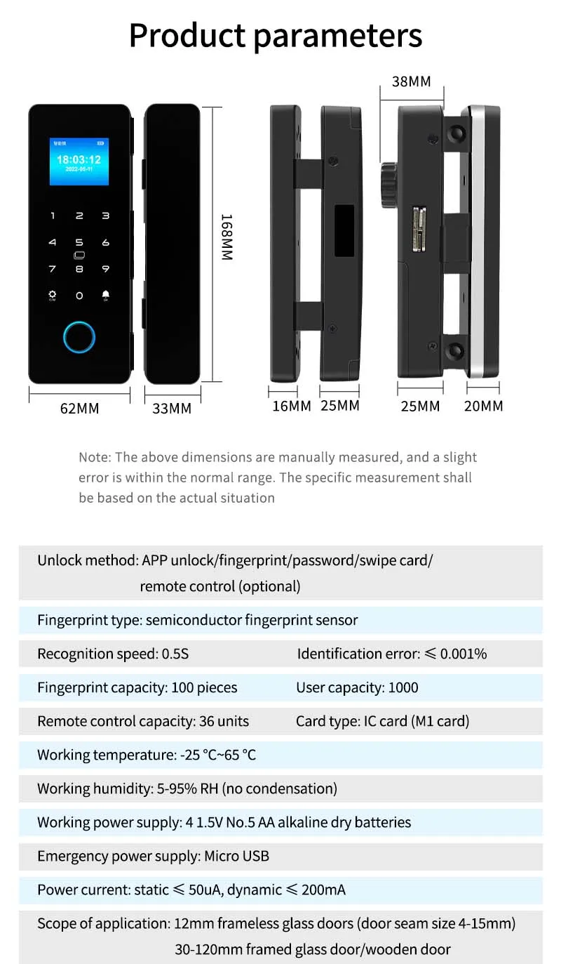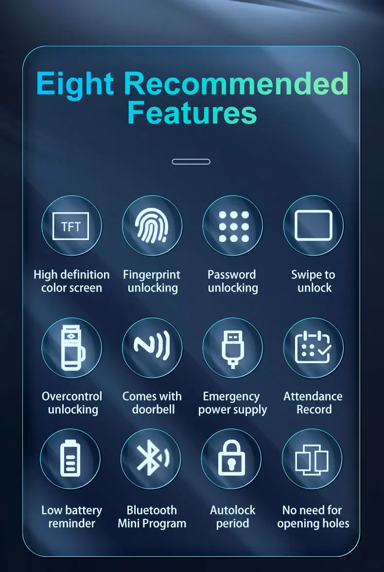 Ways To Unlock: App,REMOTE CONTROL,Bluetooth,Card,Password,FINGERPRINT