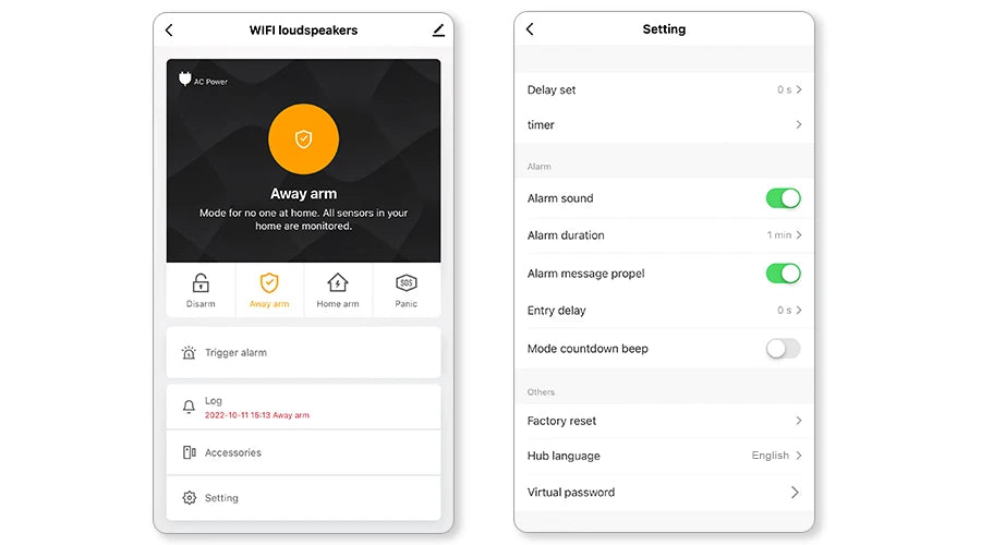 The Alarm Host will alarm when the detector be triggered no matter what state the WIFI loudspeaker