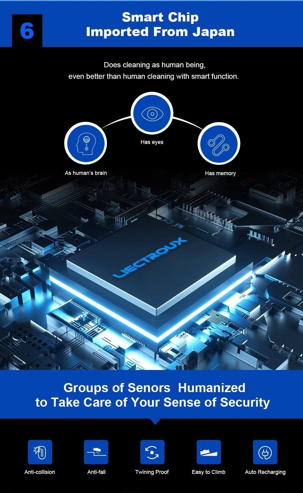1. The robot can detect the entire environment around and then build up the map inside the CPU so that it do cleaning with plan from one room after another.
